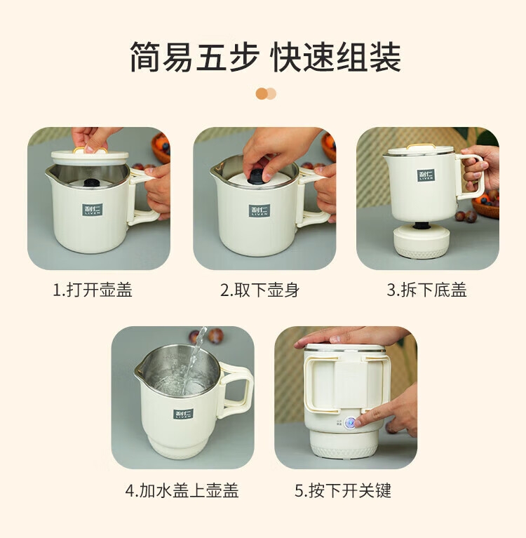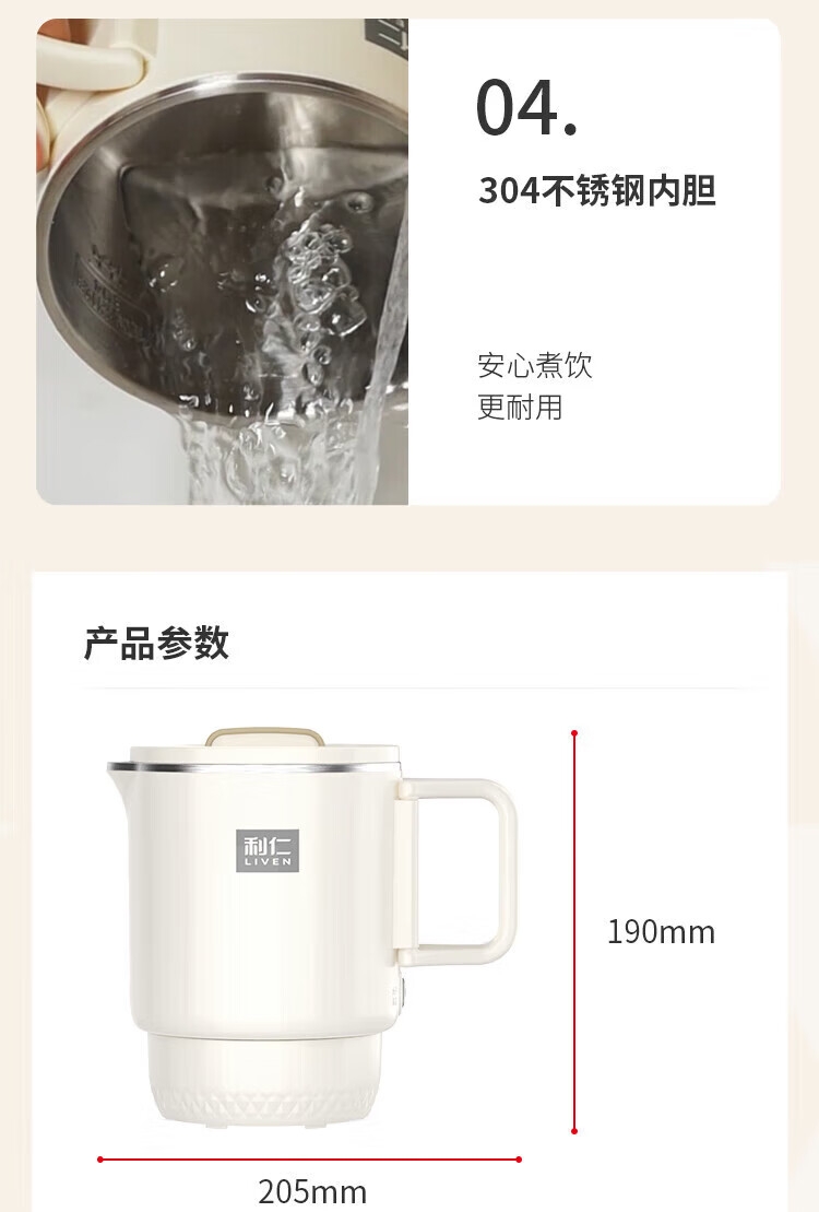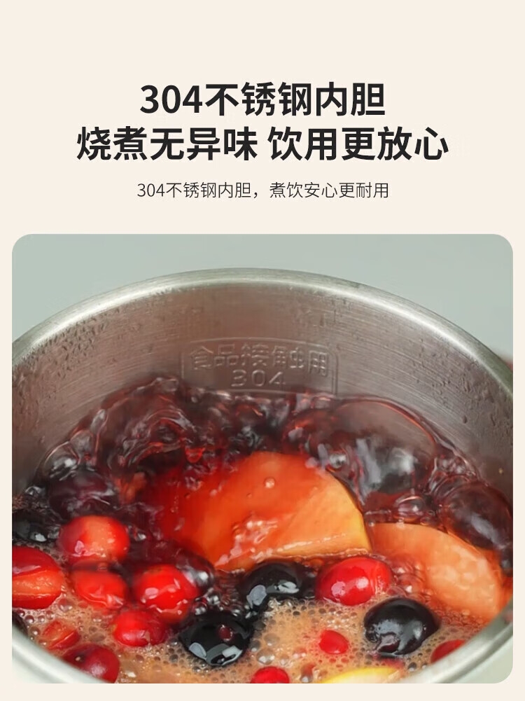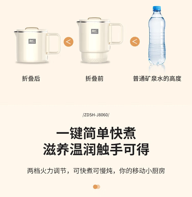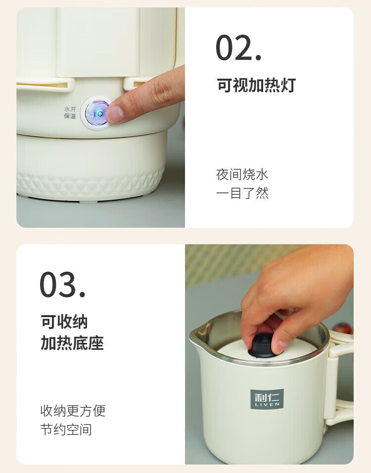 304不锈钢内胆;可折叠携带方便;600W 大功率 800ml容量