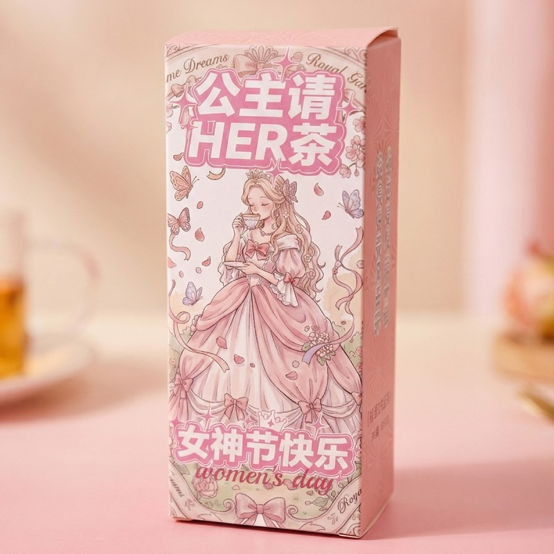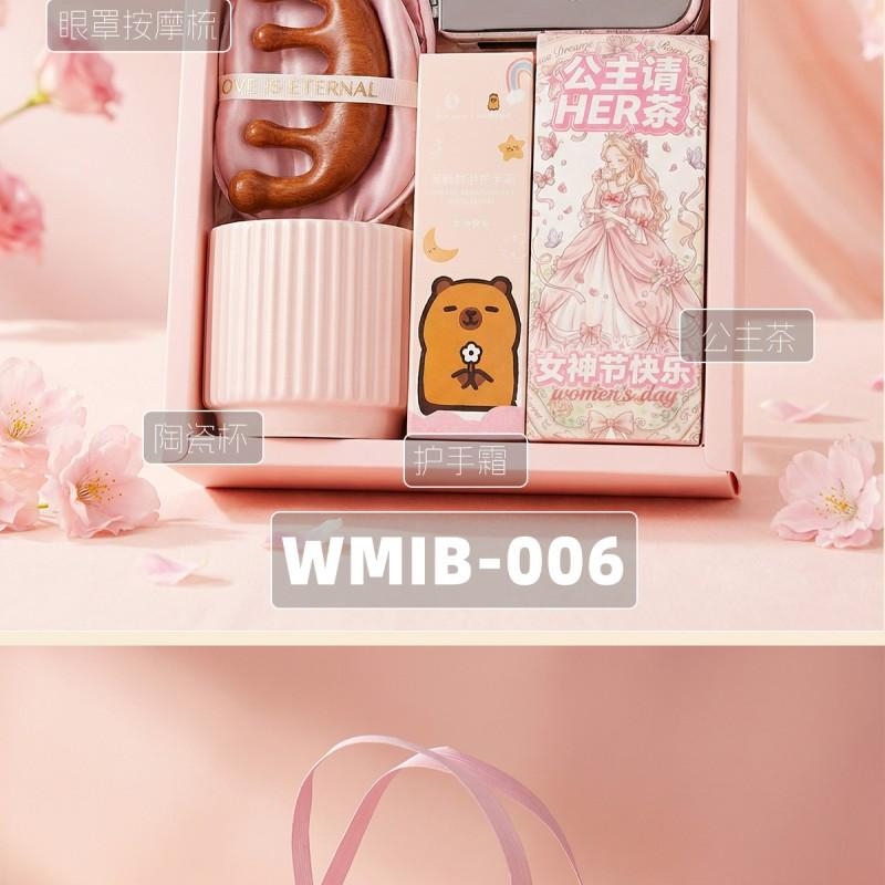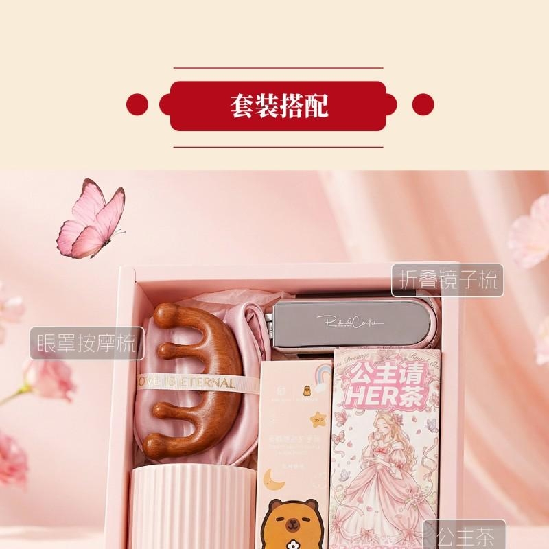 组合:陶瓷主人杯*1、公主请喝茶8g*2袋、女神节公主眼罩+按摩梳组合*1、镜子气囊头梳*1、韩方莉水润护手霜60g*1