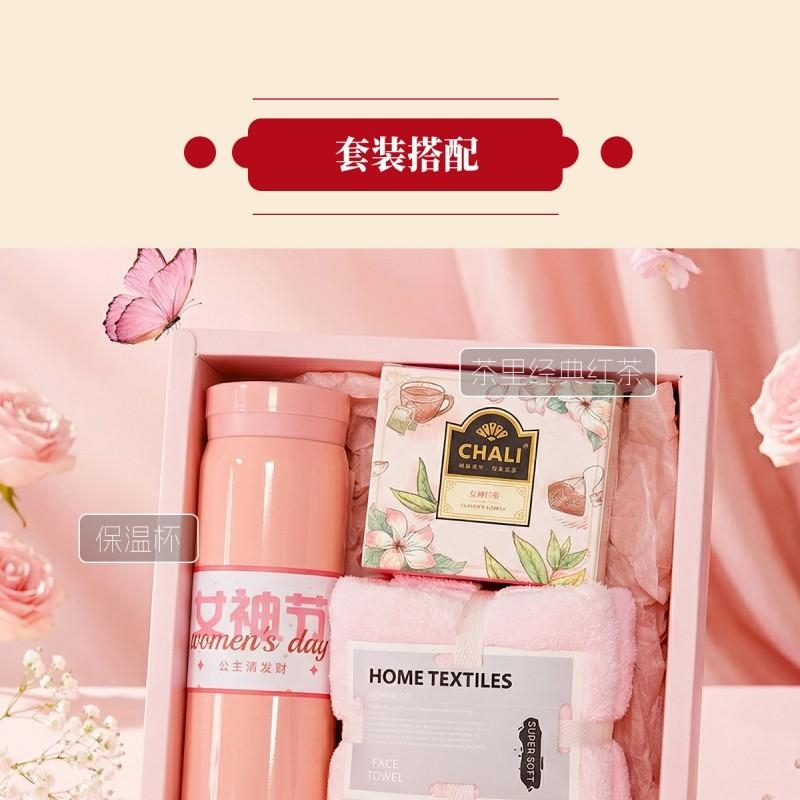 组合:茶里经典红茶2g*2袋、女神节保温杯300ML*1、粉色珊瑚绒毛巾75*34CM