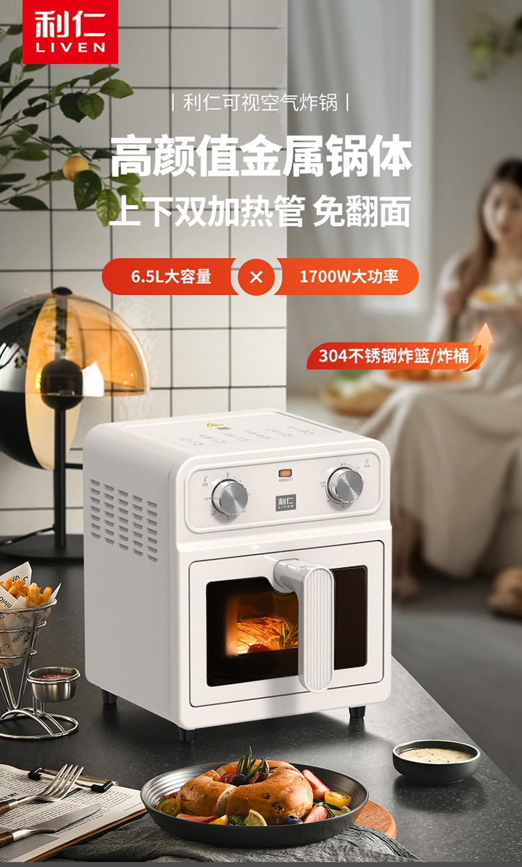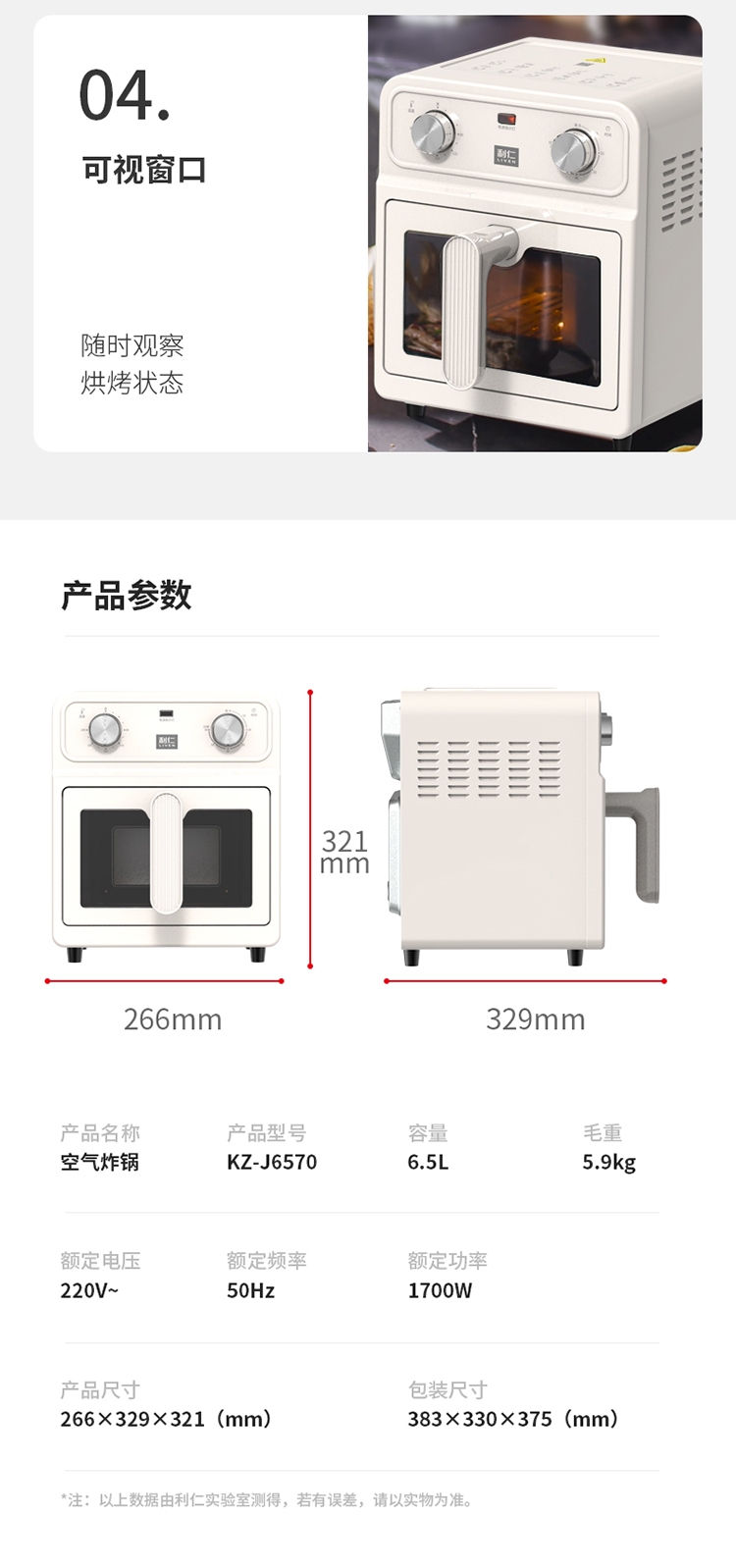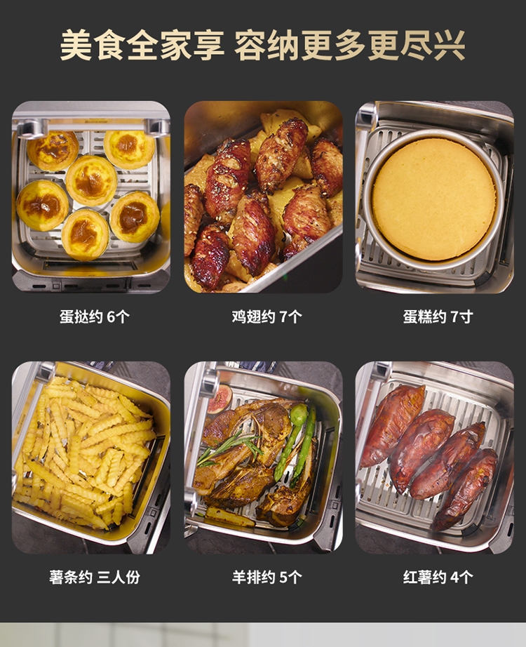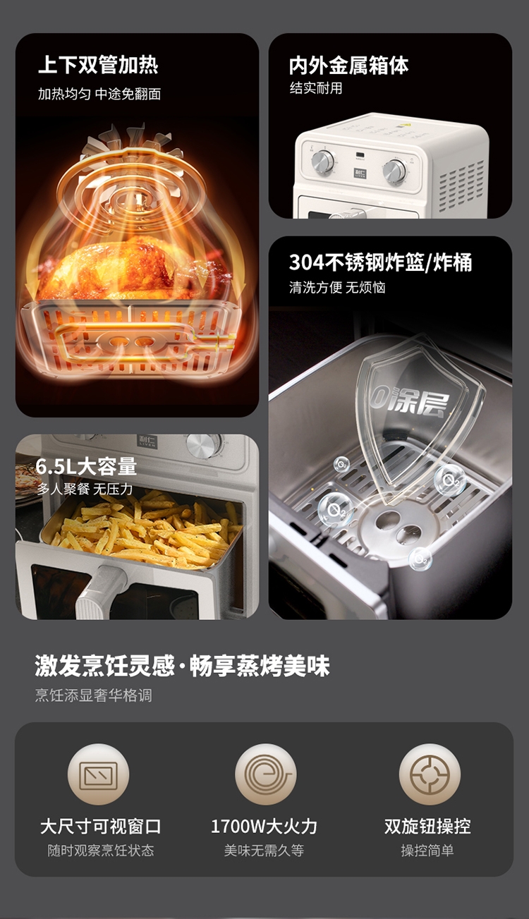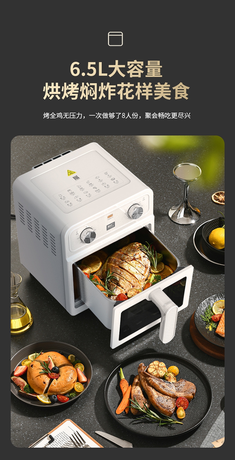 6.5升大容量空气炸锅;不锈钢炸蓝 ;手动控温自主选择