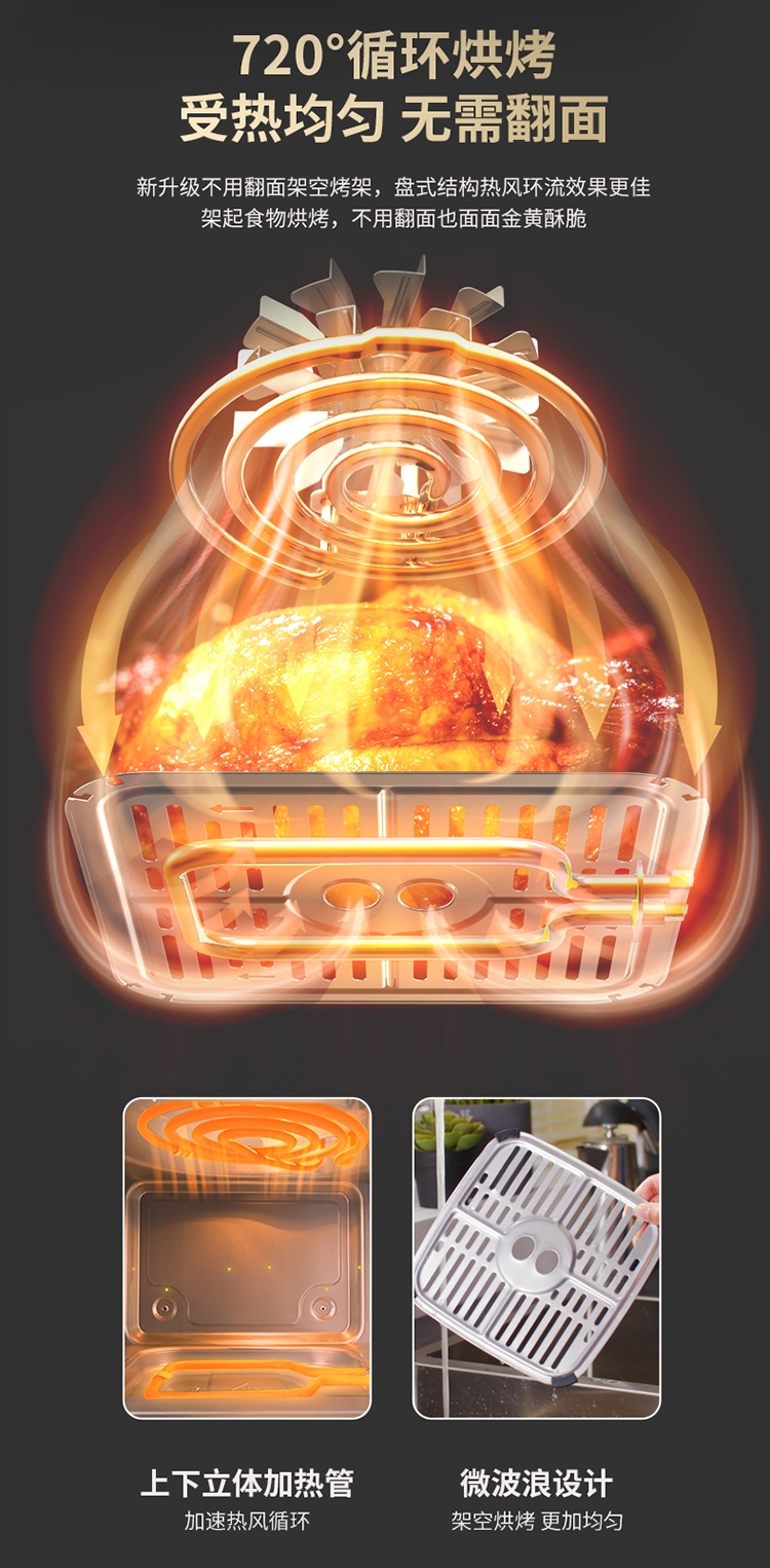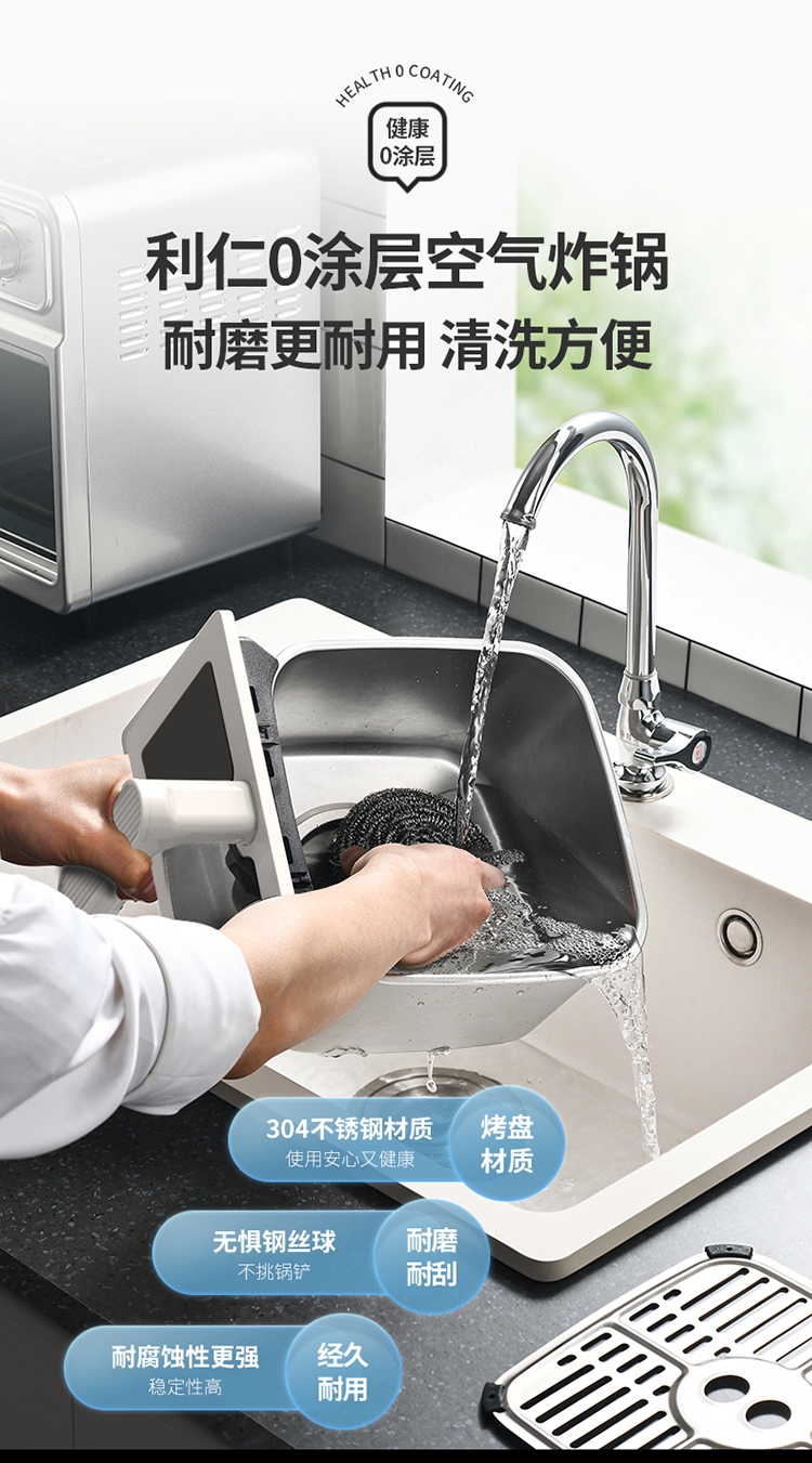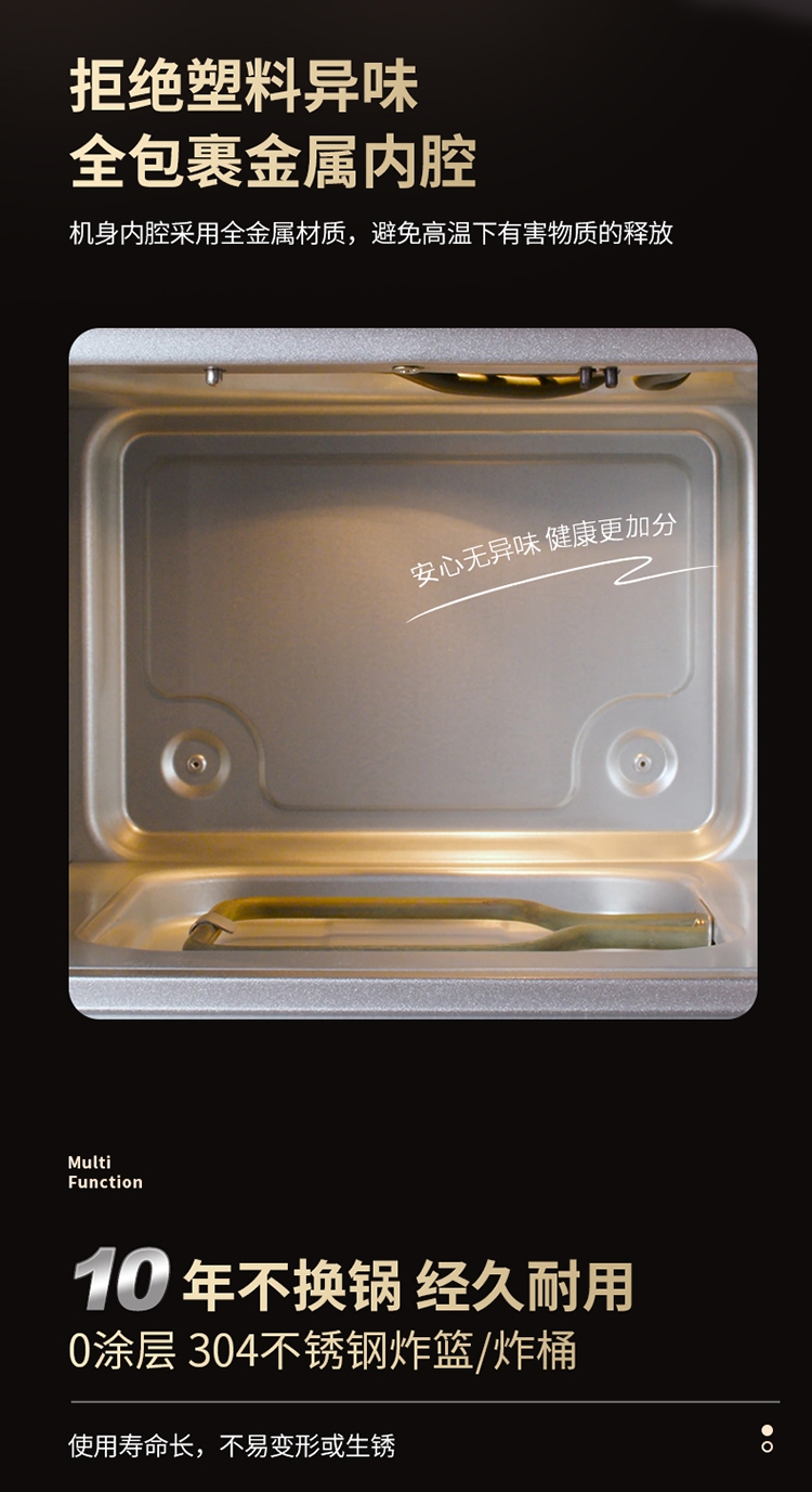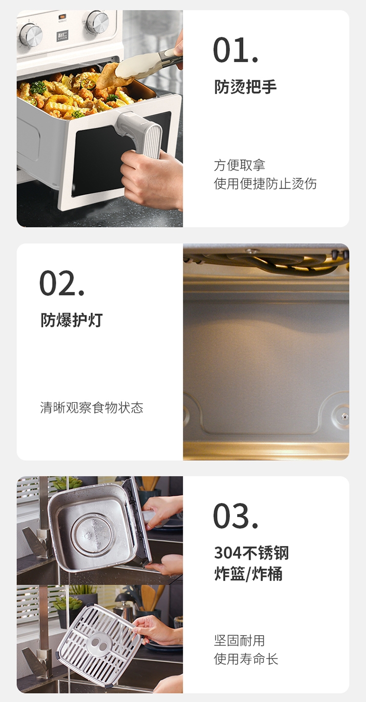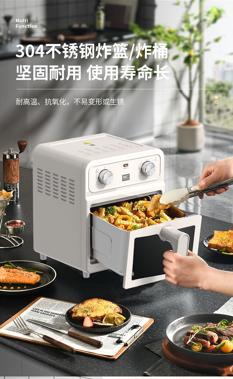 6.5升大容量空气炸锅;不锈钢炸蓝 ;手动控温自主选择