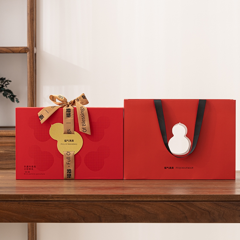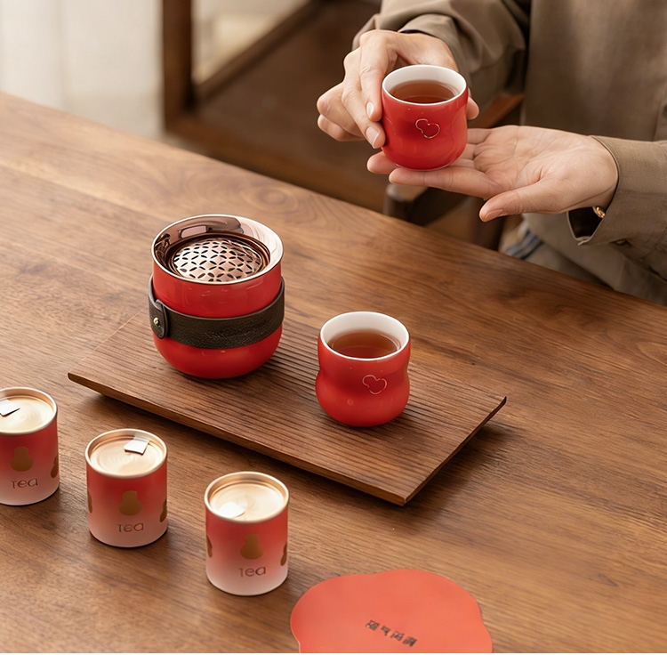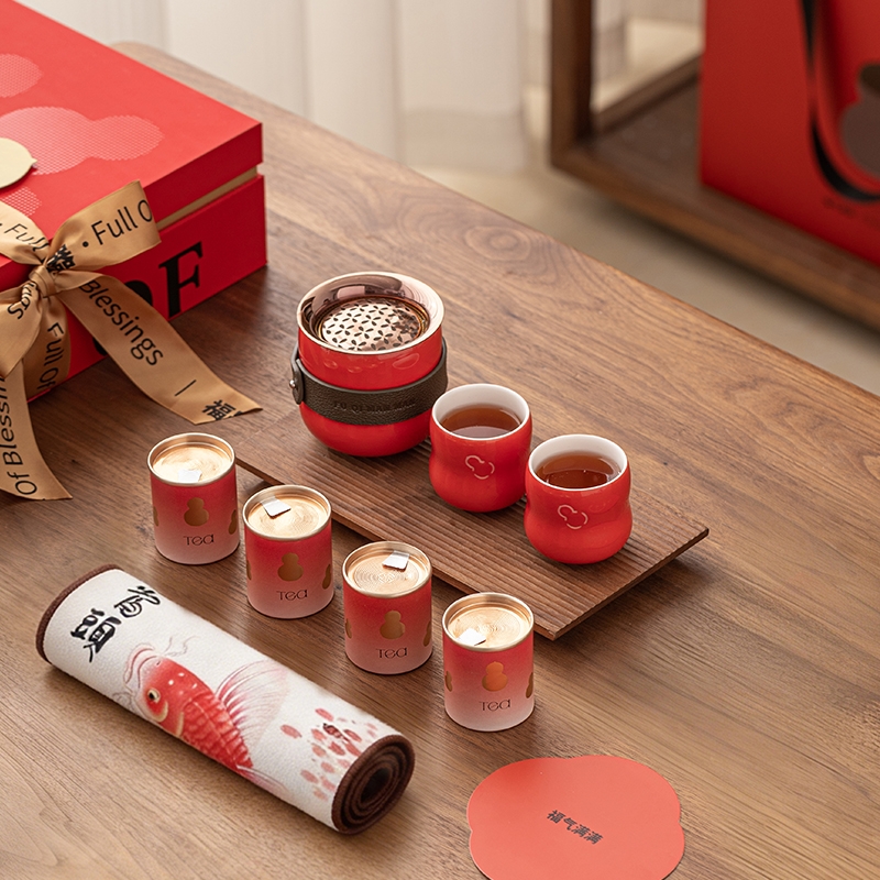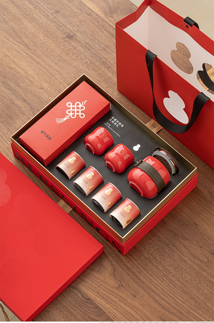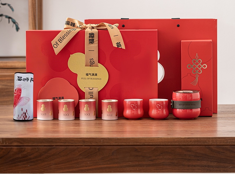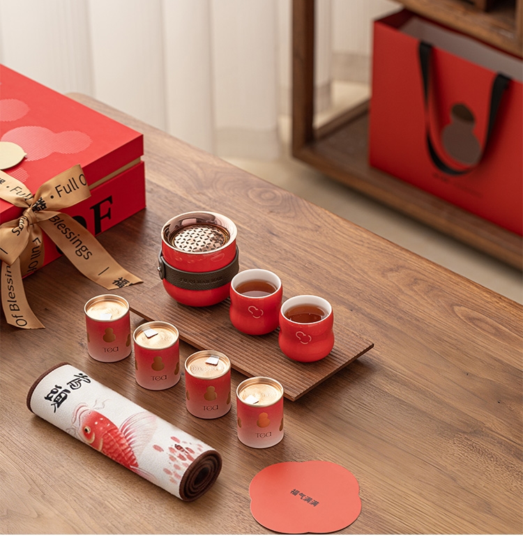 葫芦纳福,茶器一体,实用典雅超暖心;茶韵四时,朱红礼盒,福文化现代演绎;朱红金饰,平衡古今,构建送礼新美学