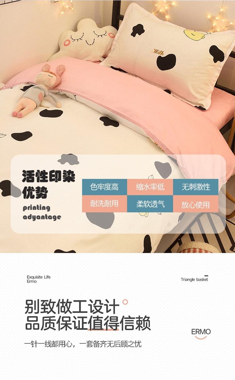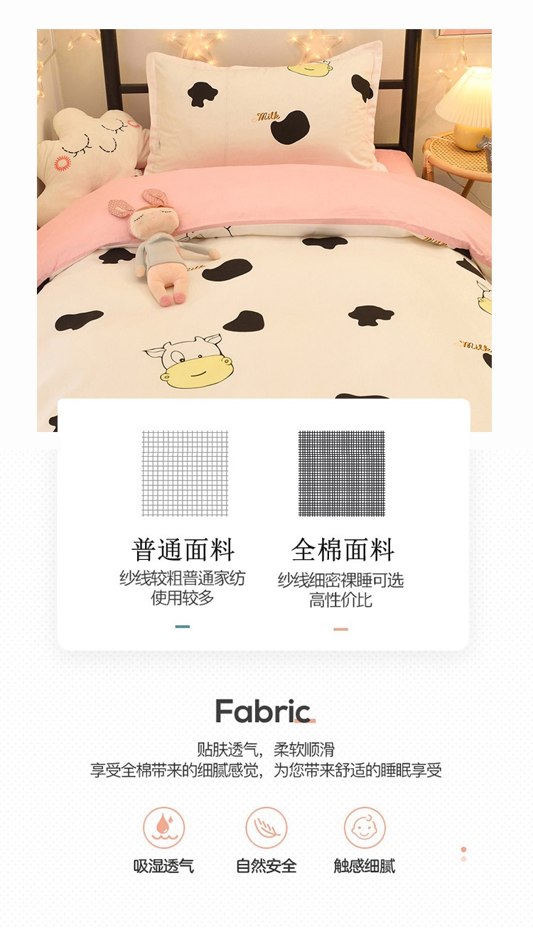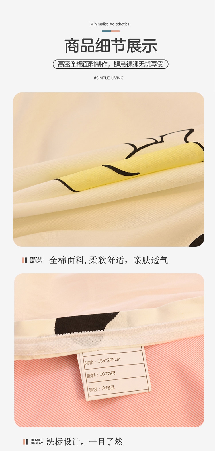 选用优质棉花来制作的全棉柔软舒适,耐用不易起絮;别致做工设计品质保证值得信赖;商品细节展示: 高密全棉面料制作,肆意裸睡无忧享受