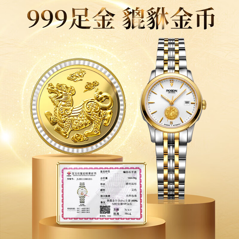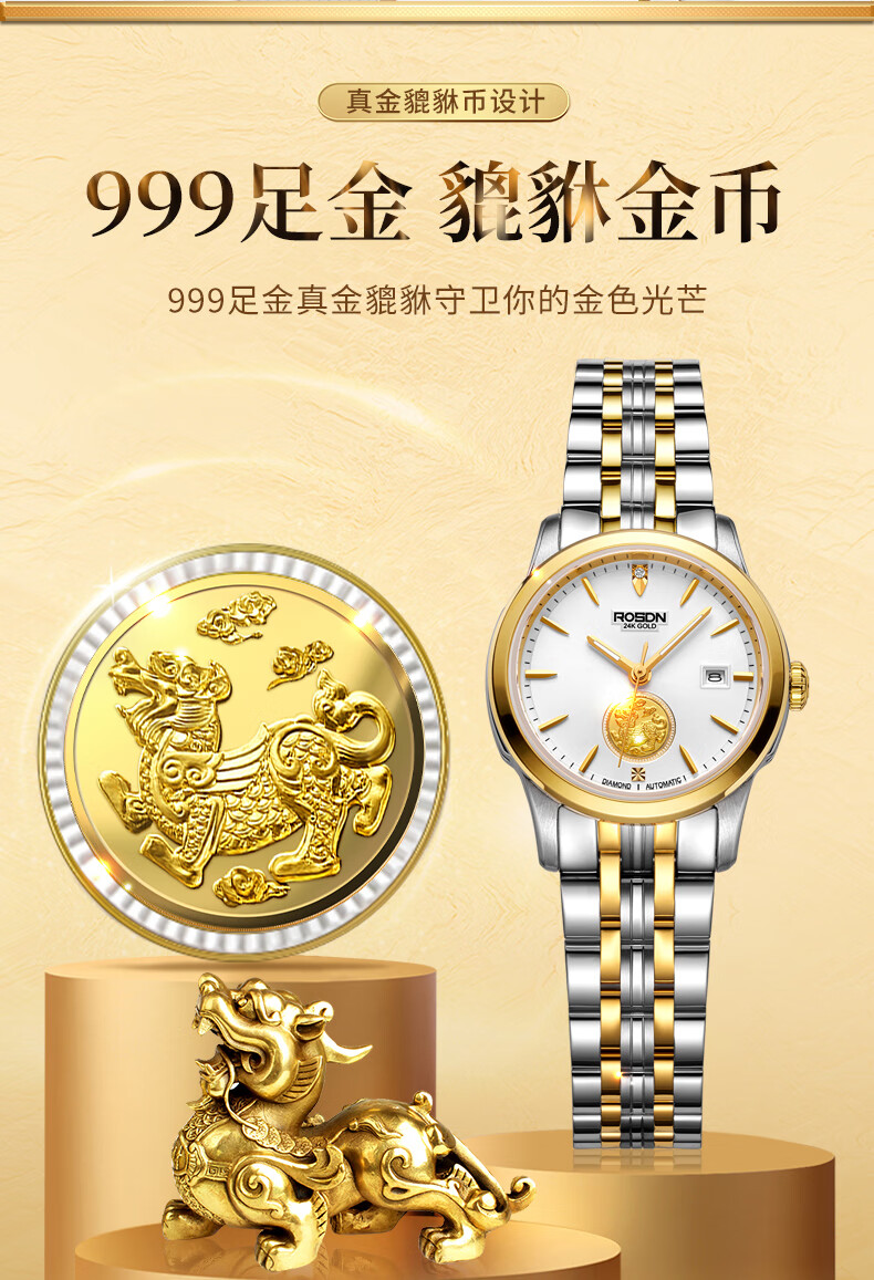 劳士顿 纯金999黄金貔貅真钻手表女款L2163