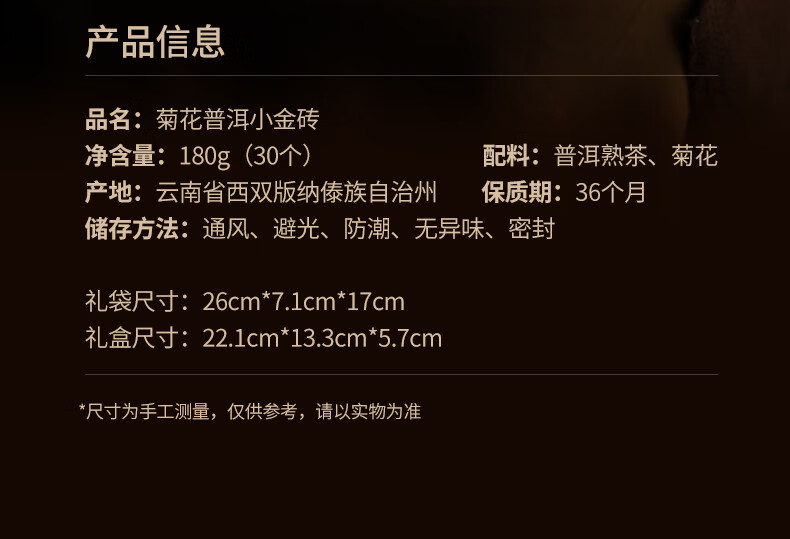 华祥苑 菊花普洱小金砖礼盒装180g1014073040011