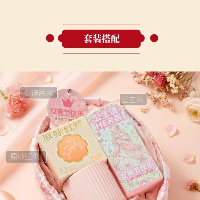 组合:公主请喝茶8g*2袋、公主陶瓷主人杯*1、女神节香片香挂*1、原味红糖15g*4颗