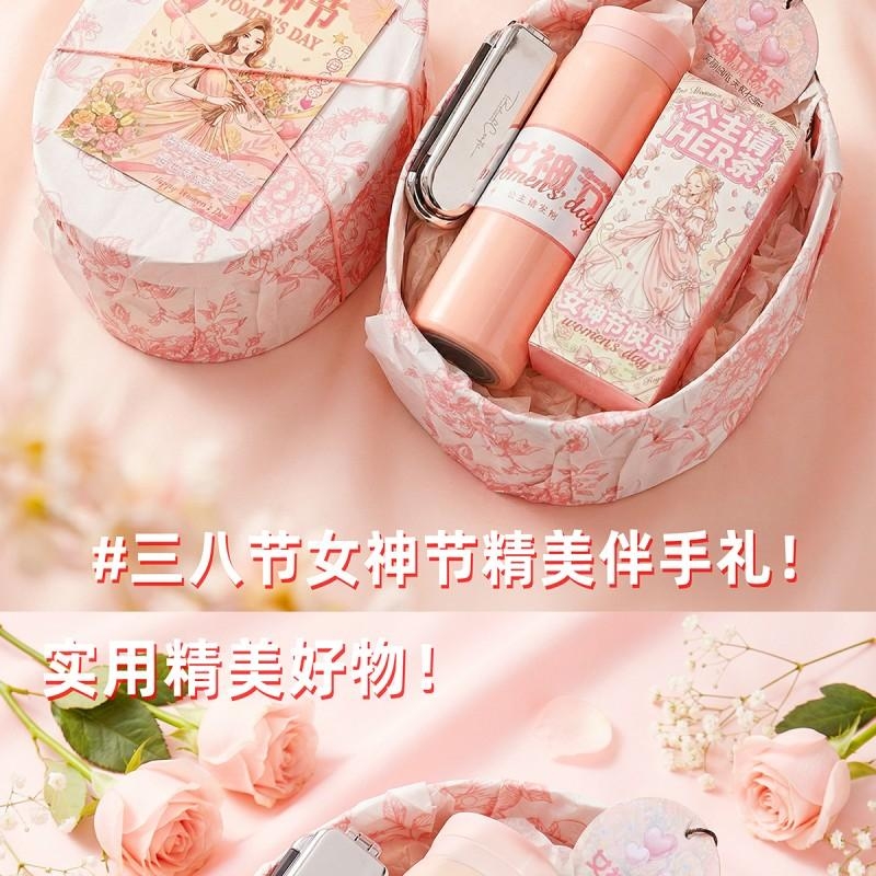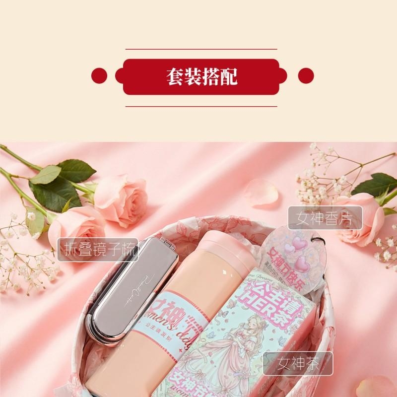 组合:公主请喝茶8g*2袋、公主请发财保温杯300ML*1、镜子气囊头梳*1、女神节香片香挂*1