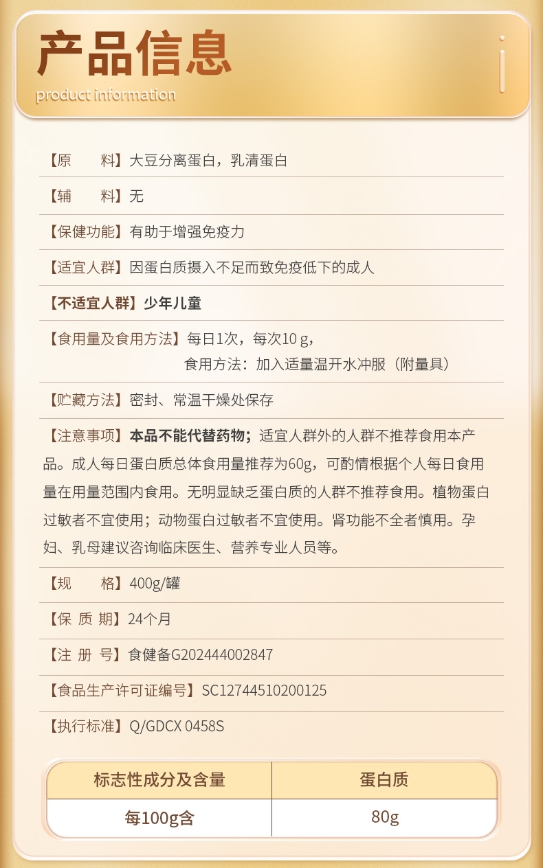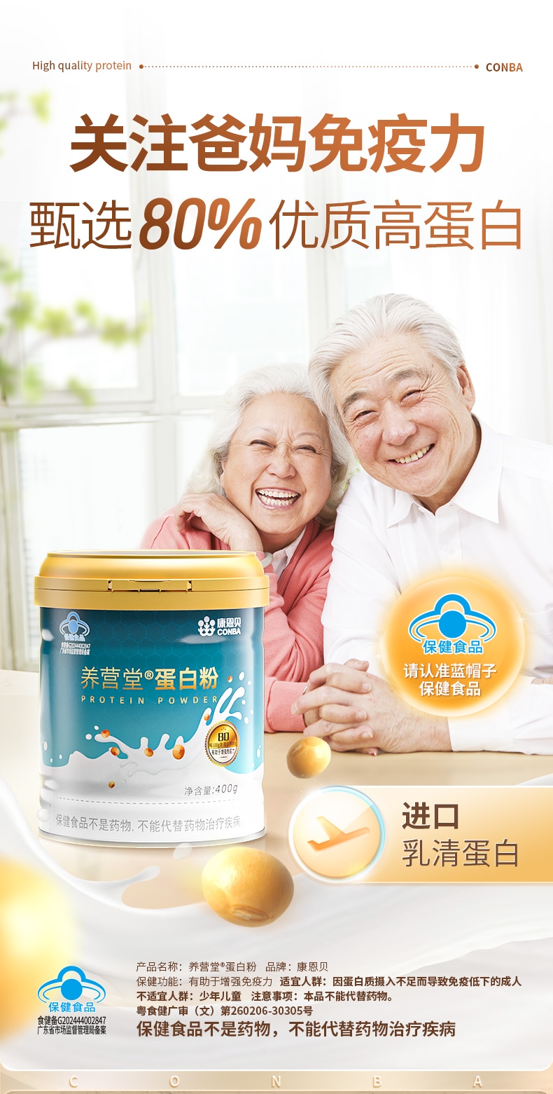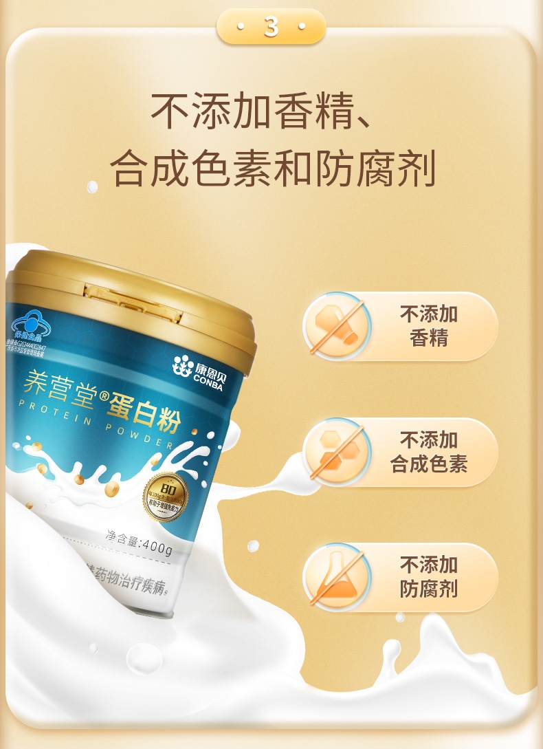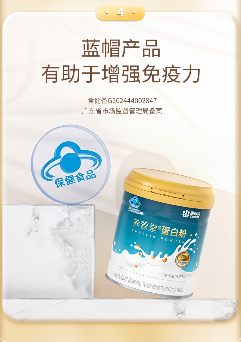 动植物双蛋白均衡易吸收;不添加香精、合成色素、防腐剂;蓝帽产品有助于增强免疫力