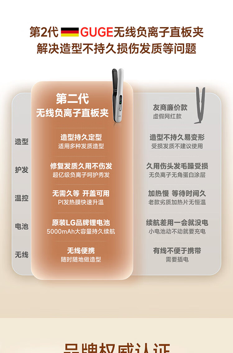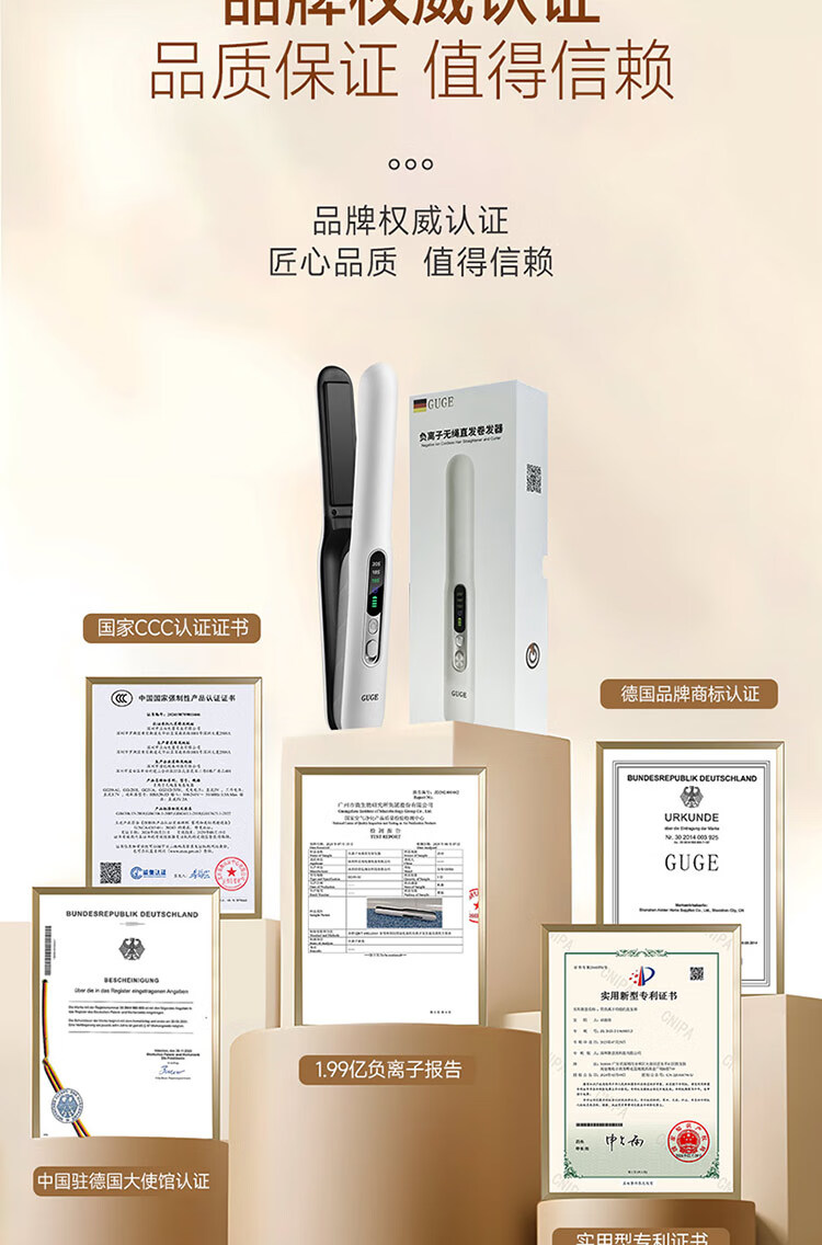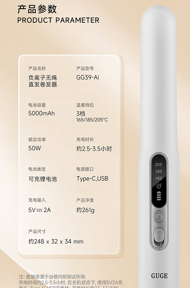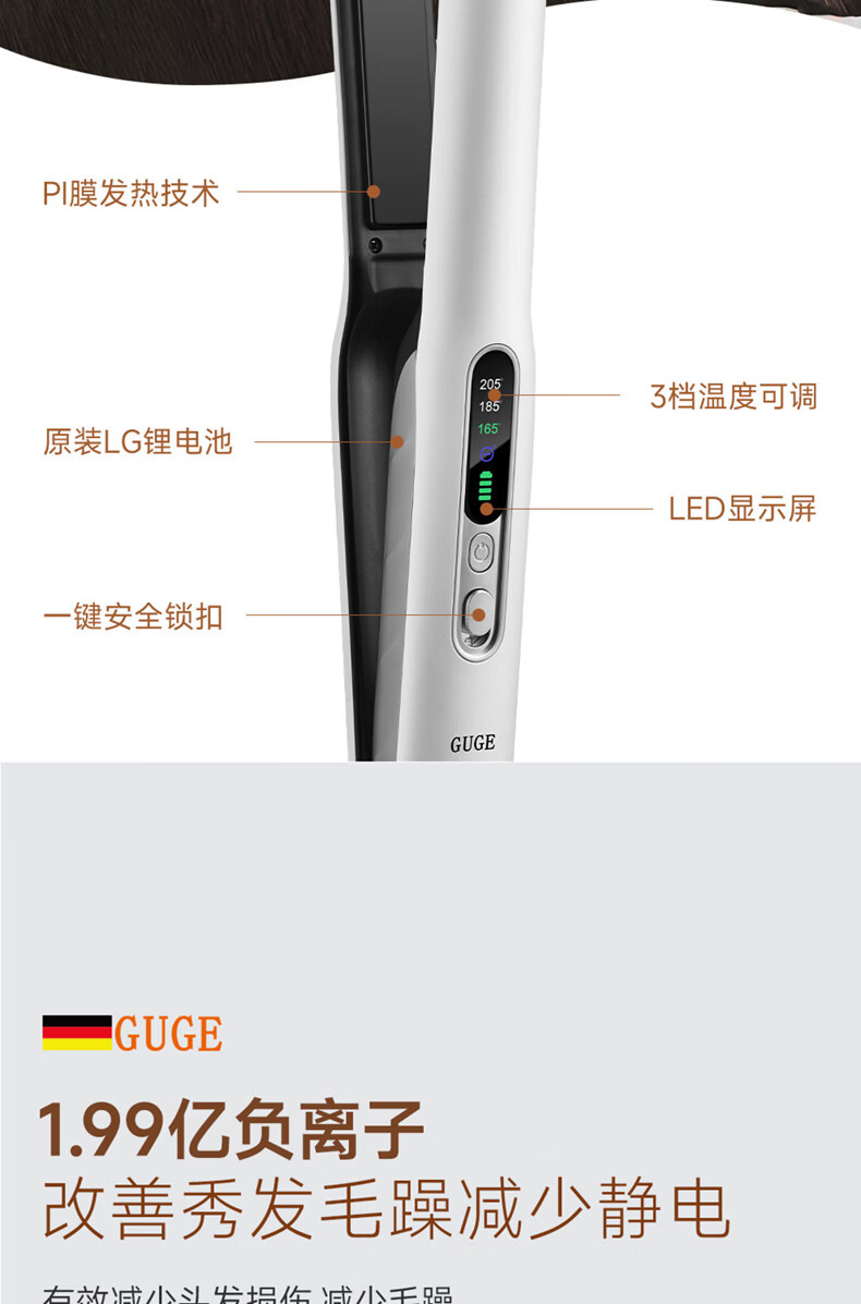 谷格 负离子无绳直发卷发器GG39-Al