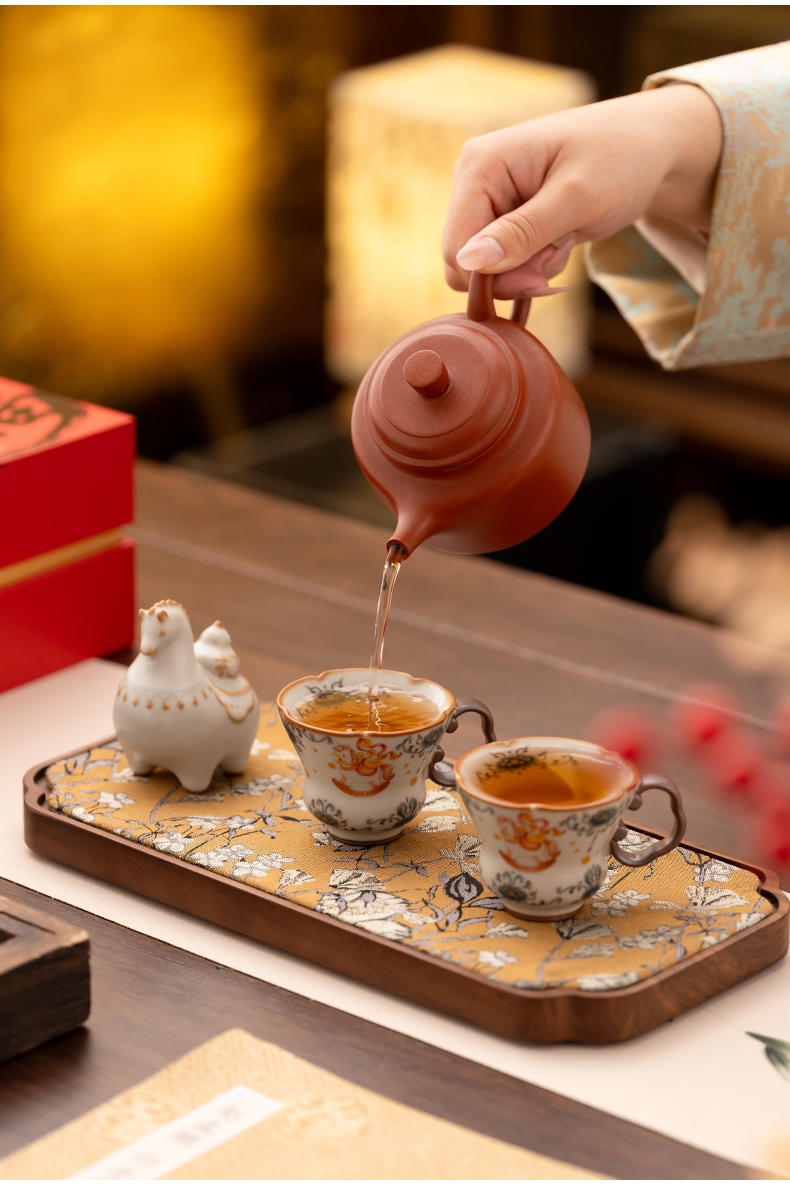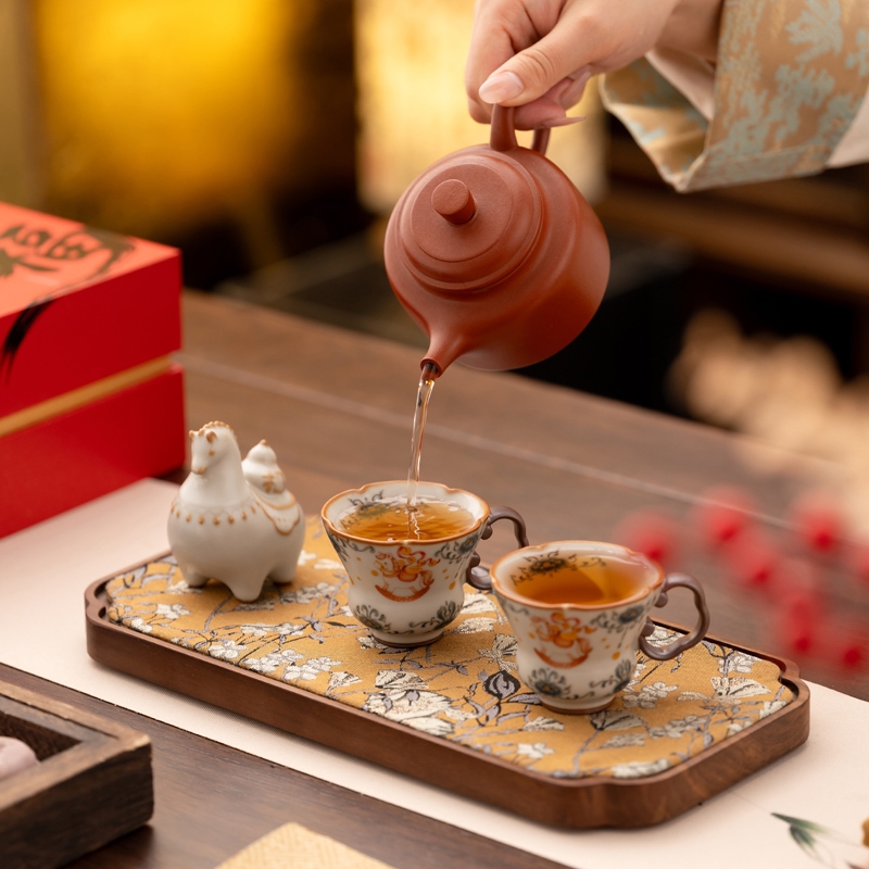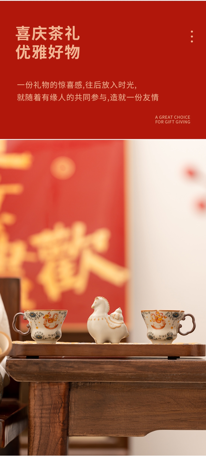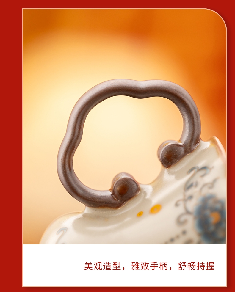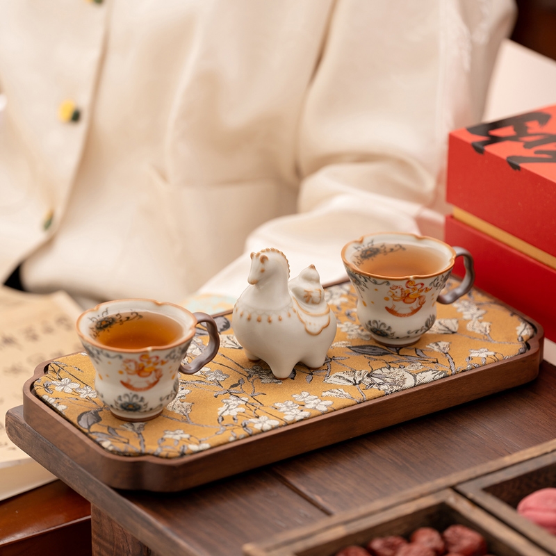 马年开门红礼品,马上有钱杯子摆件套装;马背上葫芦造型,寓意福禄。亚黄汝瓷,玛瑙入釉,蝉翼;内外皆有花面,家有千财万贯,不如汝窑一片。独家专利