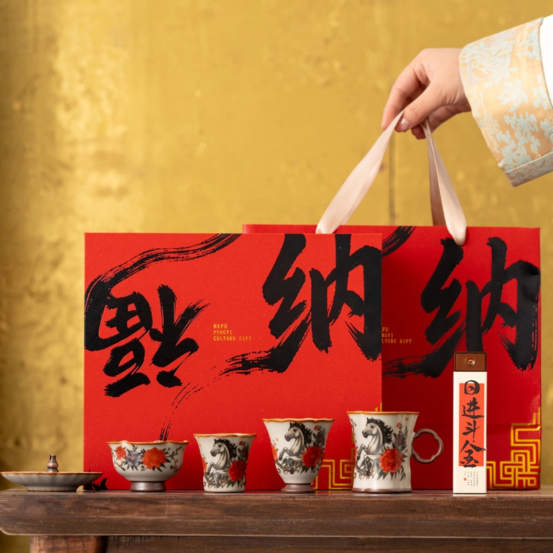 开门红纳福马到成功香道多杯套装