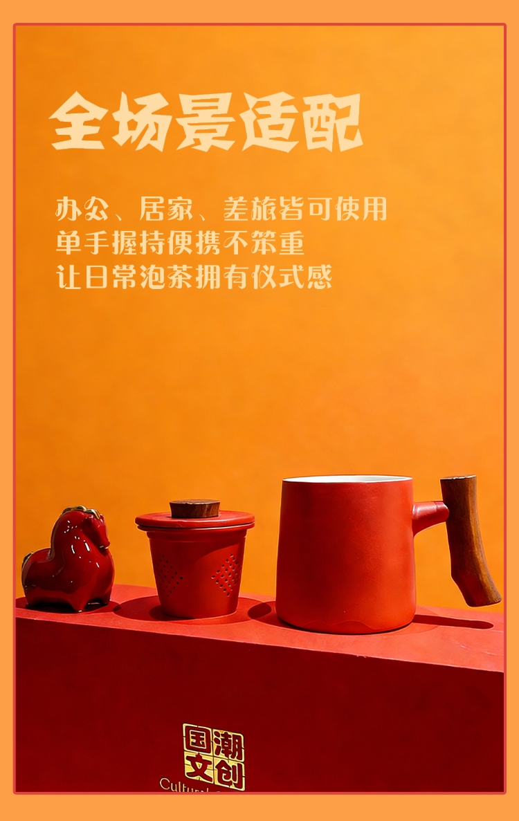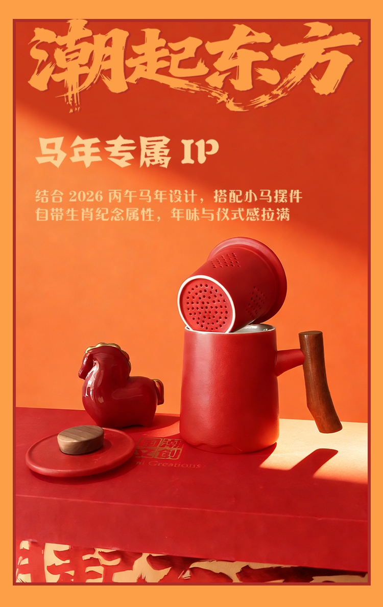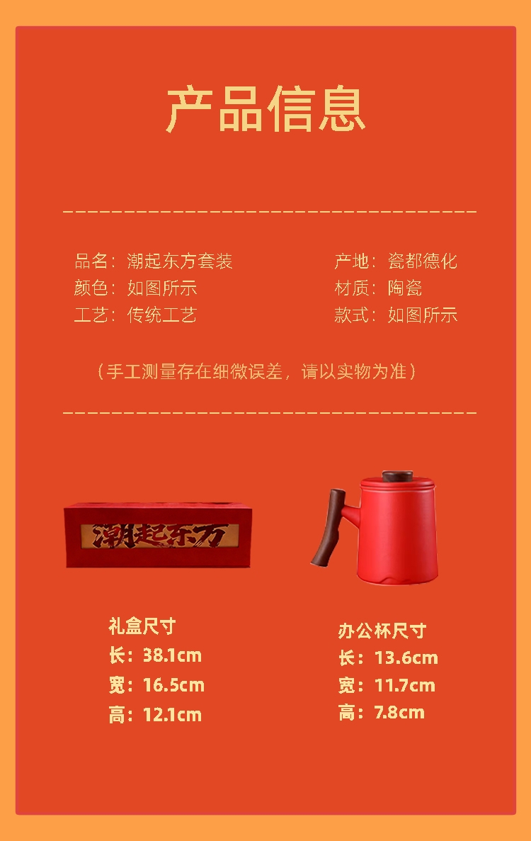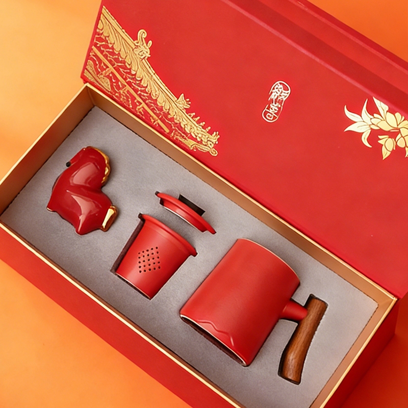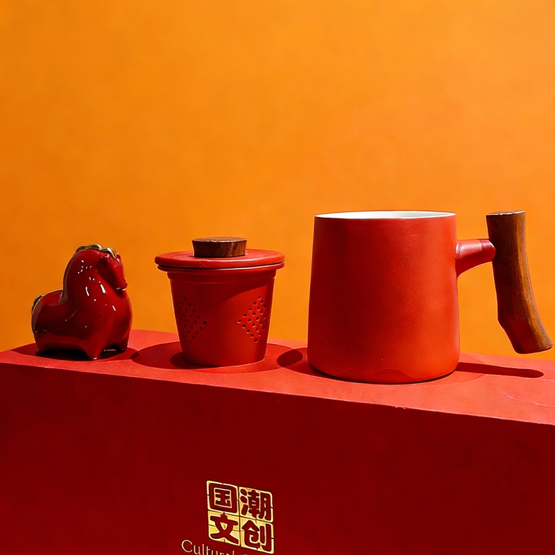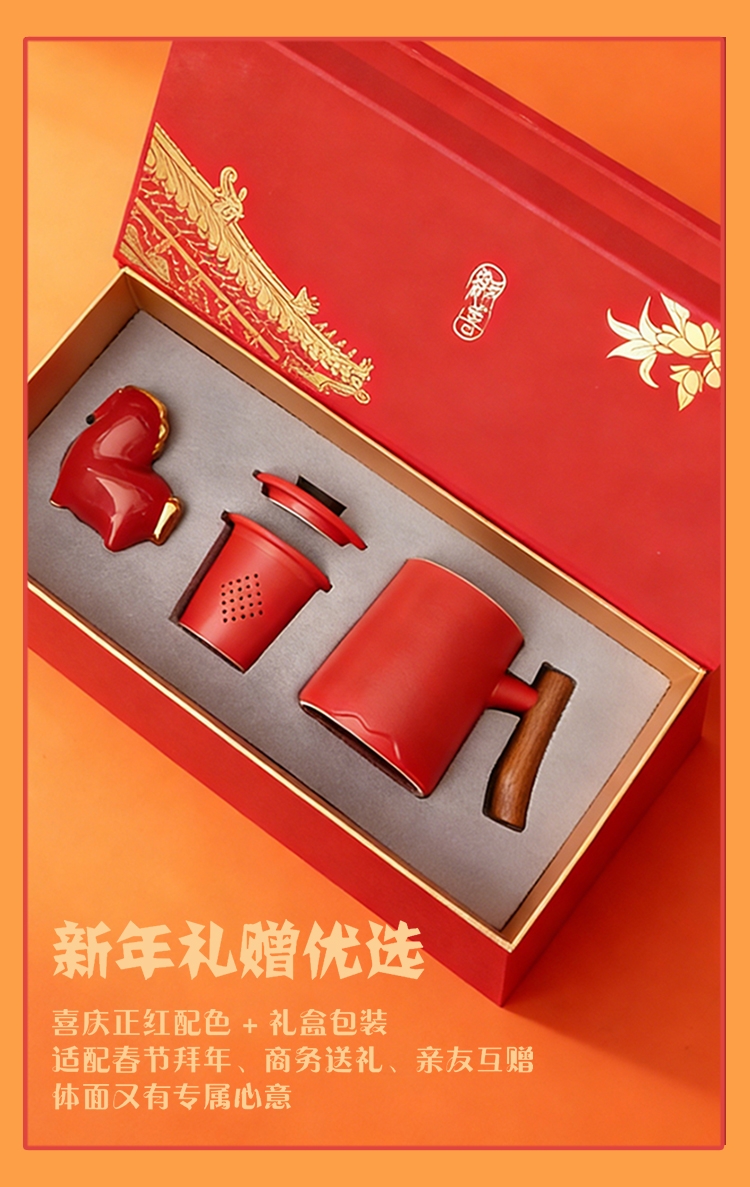 匠界新物 潮起东方陶瓷摆件办公杯开门红套