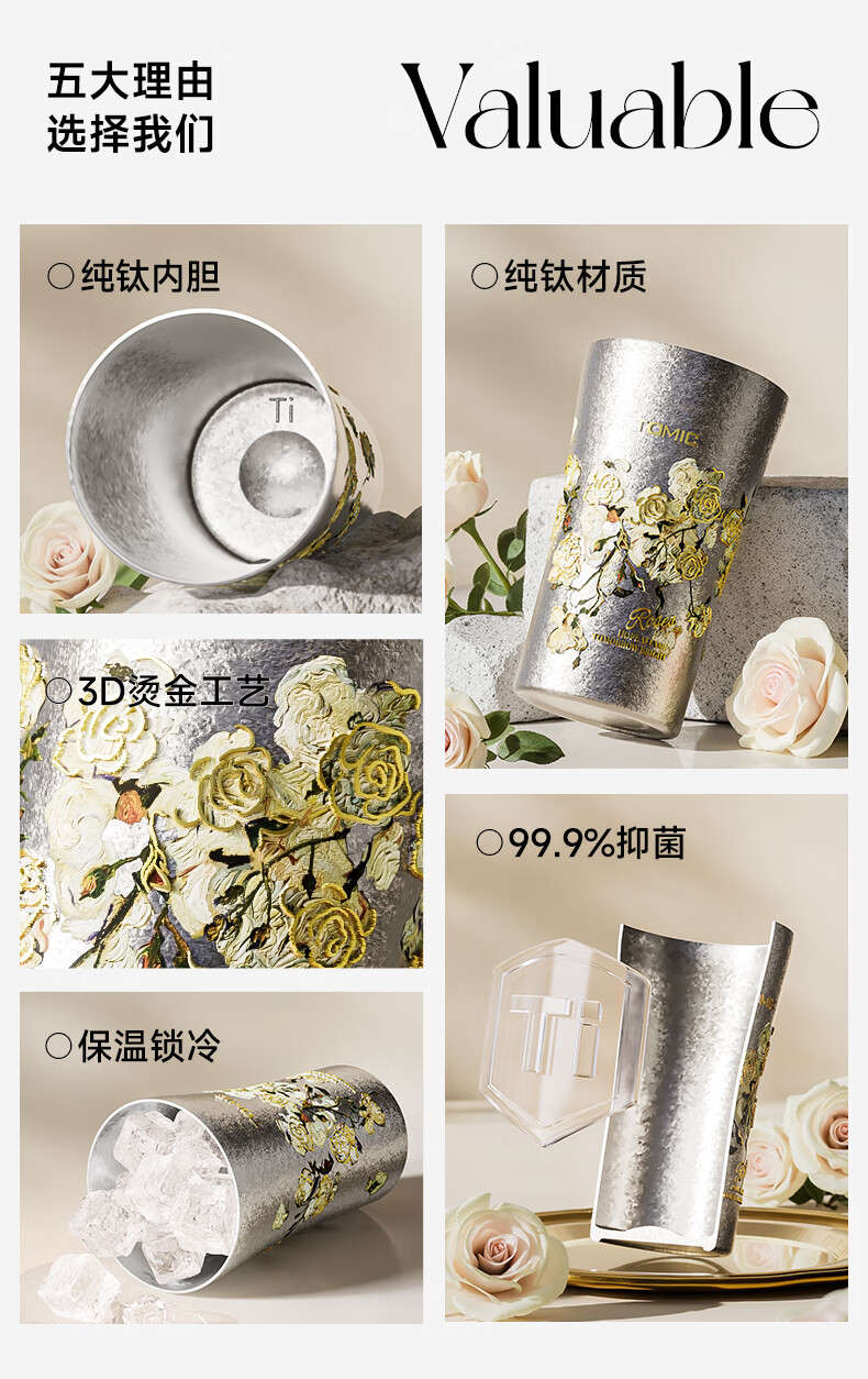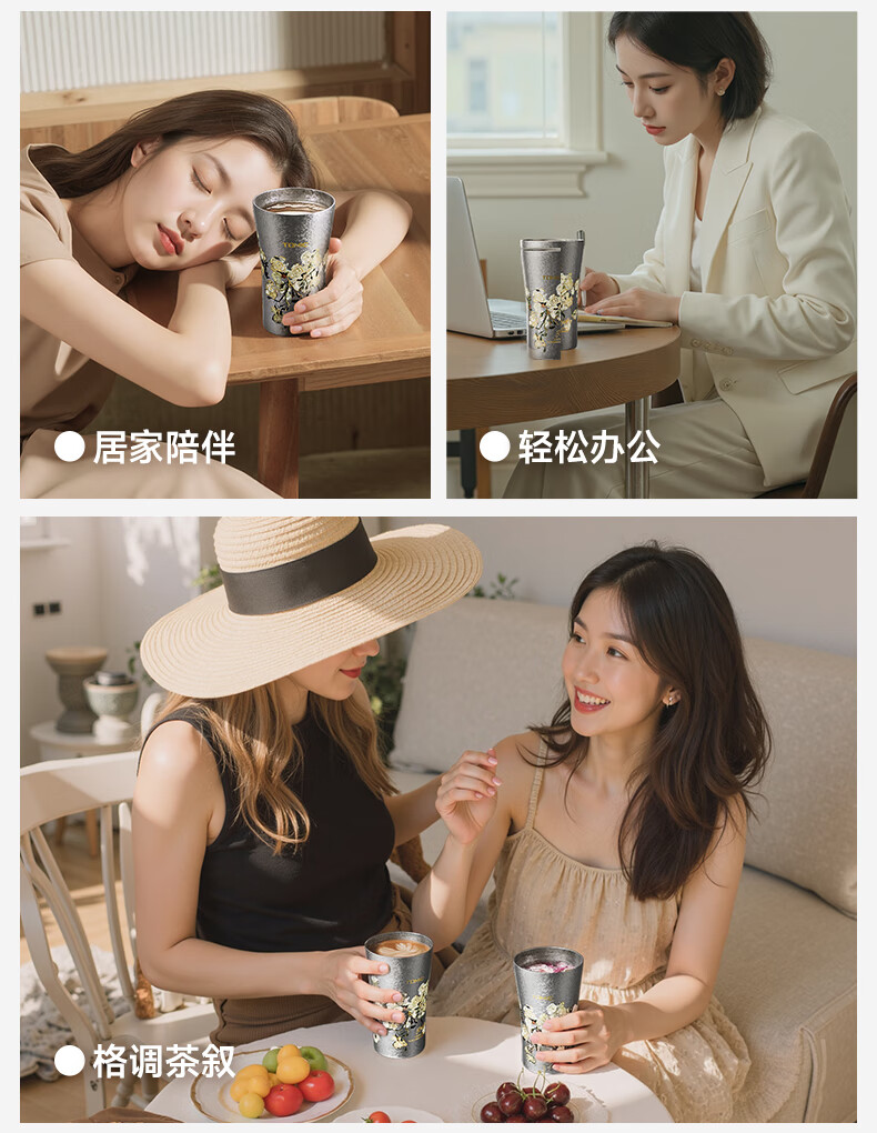 长效保温保冷;大口径畅饮杯;5D纳米鎏金真空技术