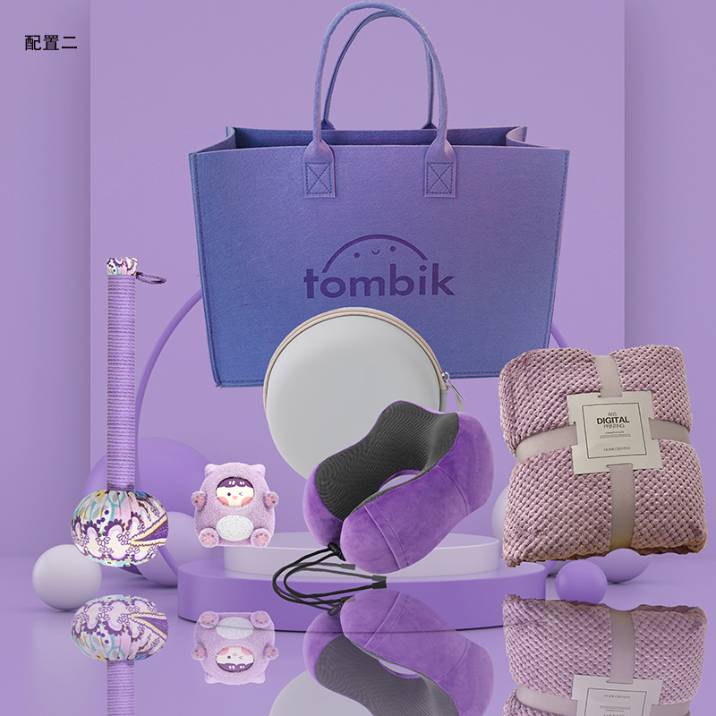 配置一:磁吸布记忆棉U型枕 U型枕收纳盒 法兰绒菠萝格午睡毯 紫色龙头笔 紫色艾草锤 紫色搭扣笔记本 100W四合一超级快充数据线
