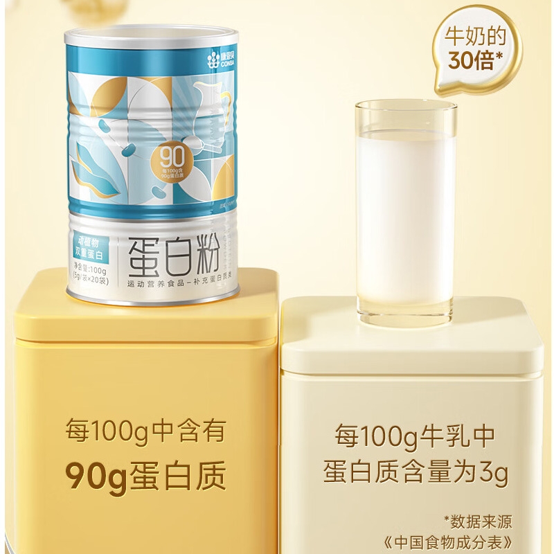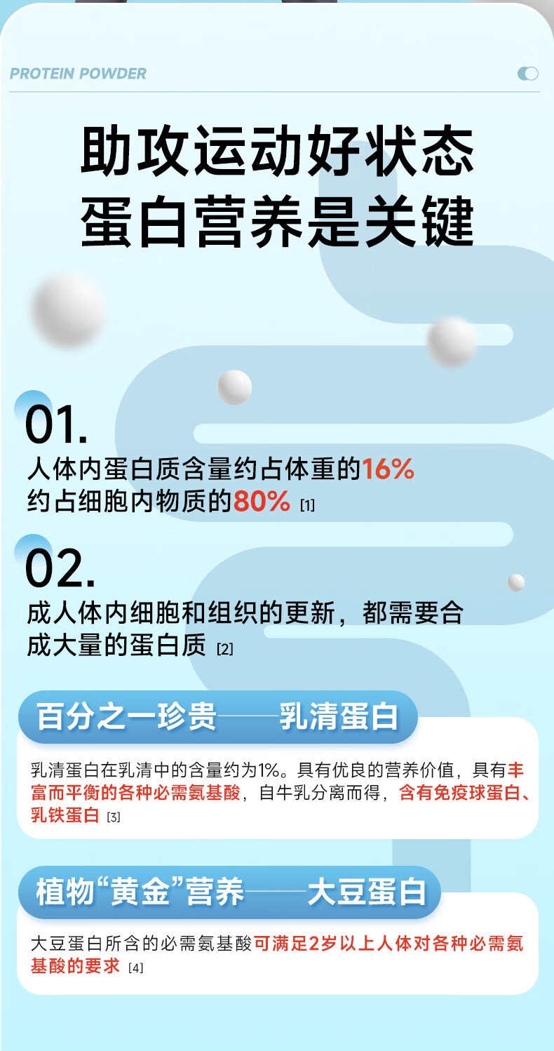 蛋白粉中蛋白质含量90%;新西兰进口浓缩乳清蛋白+植物蛋白大豆分离蛋白;0添加蔗糖配方纯净