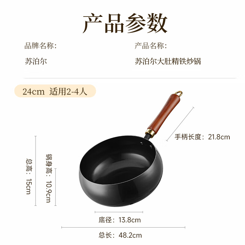 苏泊尔 家用精铁无涂层大肚锅24cmFC24D1