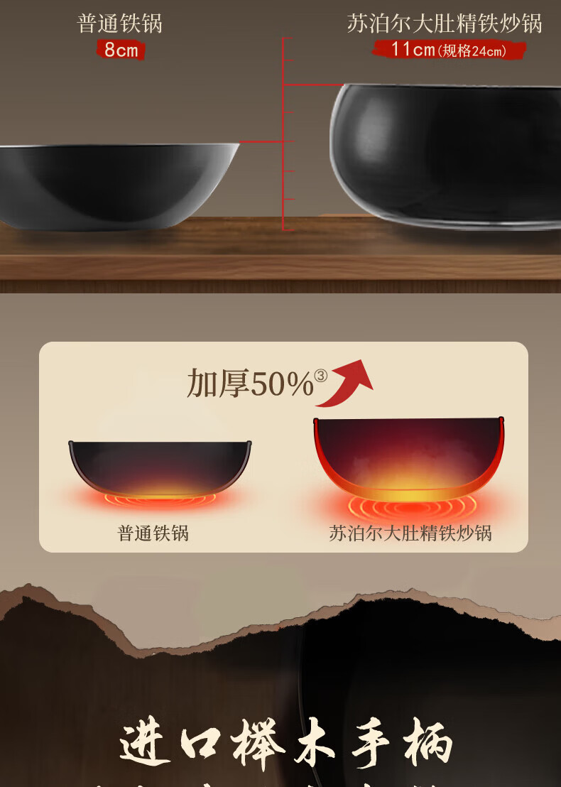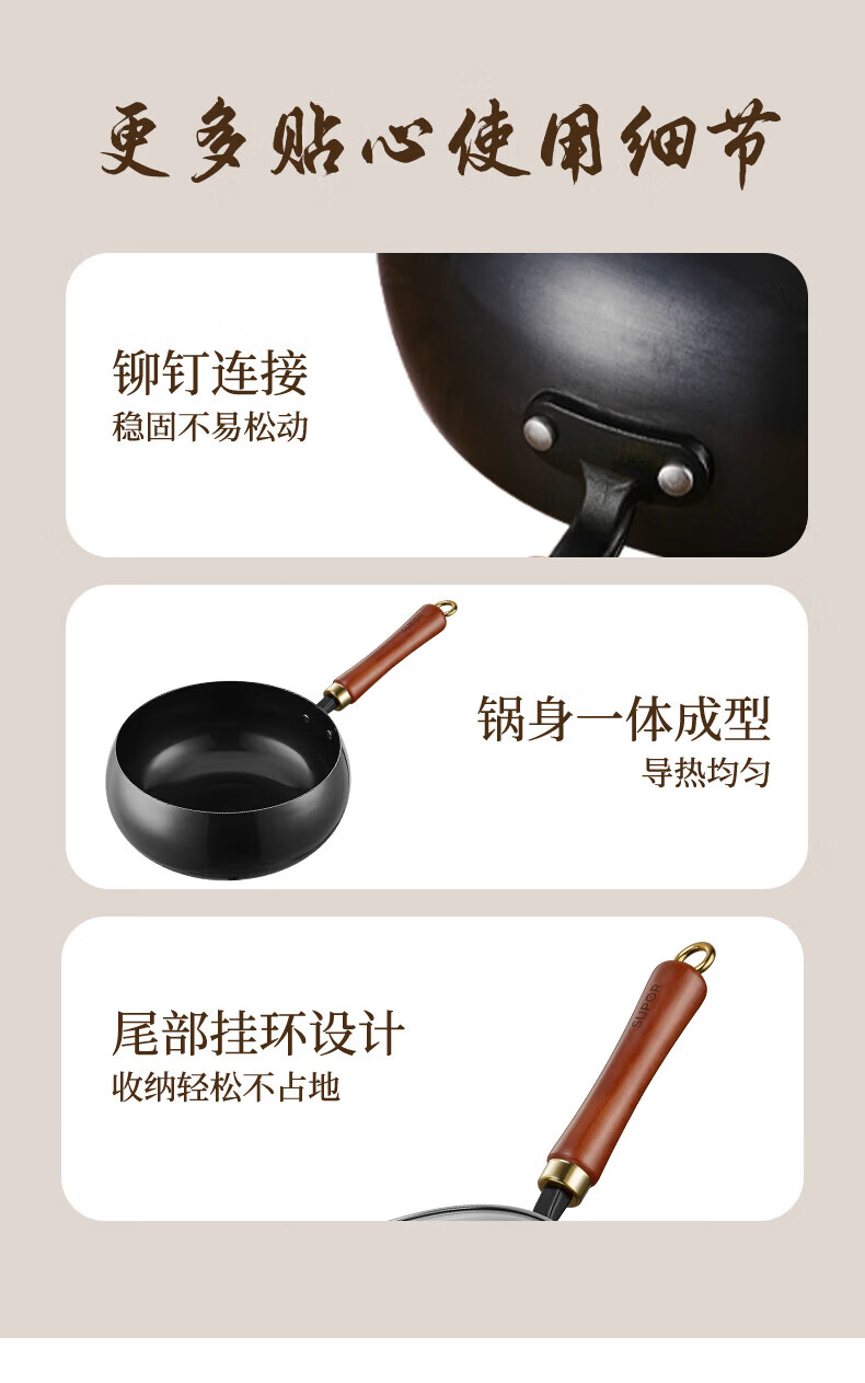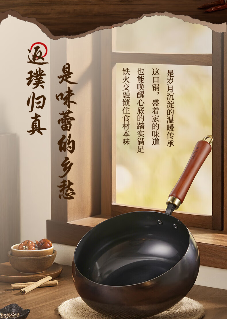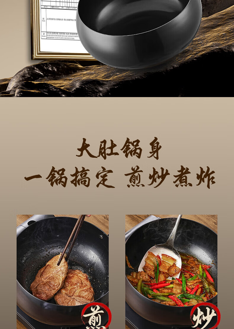 受热均匀,不易粘糊;精铁炒锅,锅气满满;节能储热,还原本味