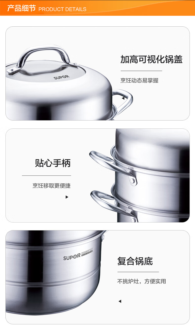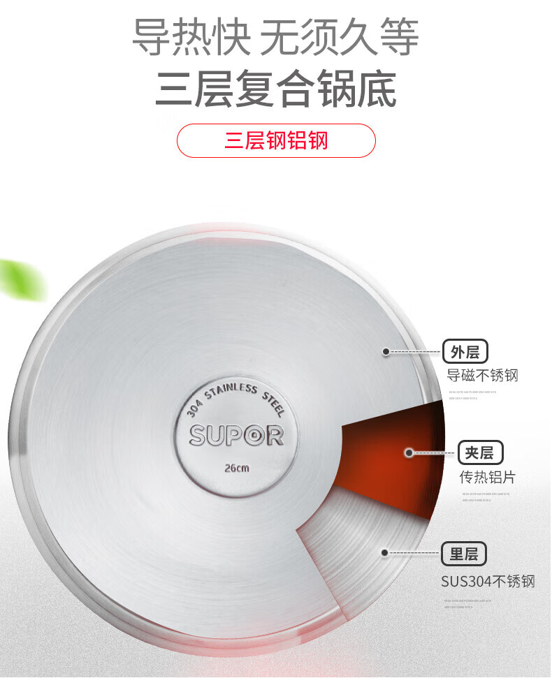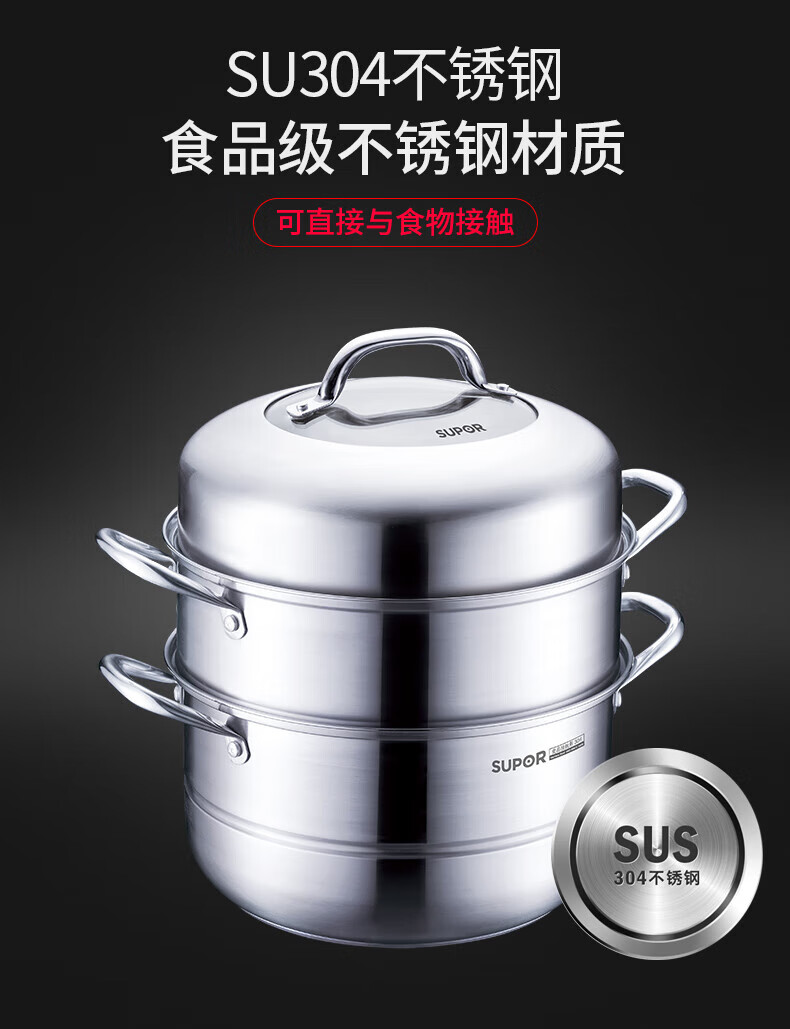 苏泊尔 不锈钢三层复底蒸锅26cmSZ28B25