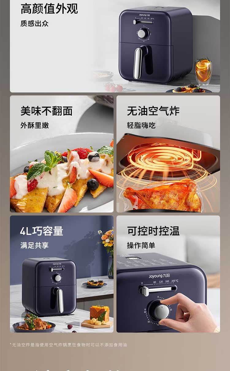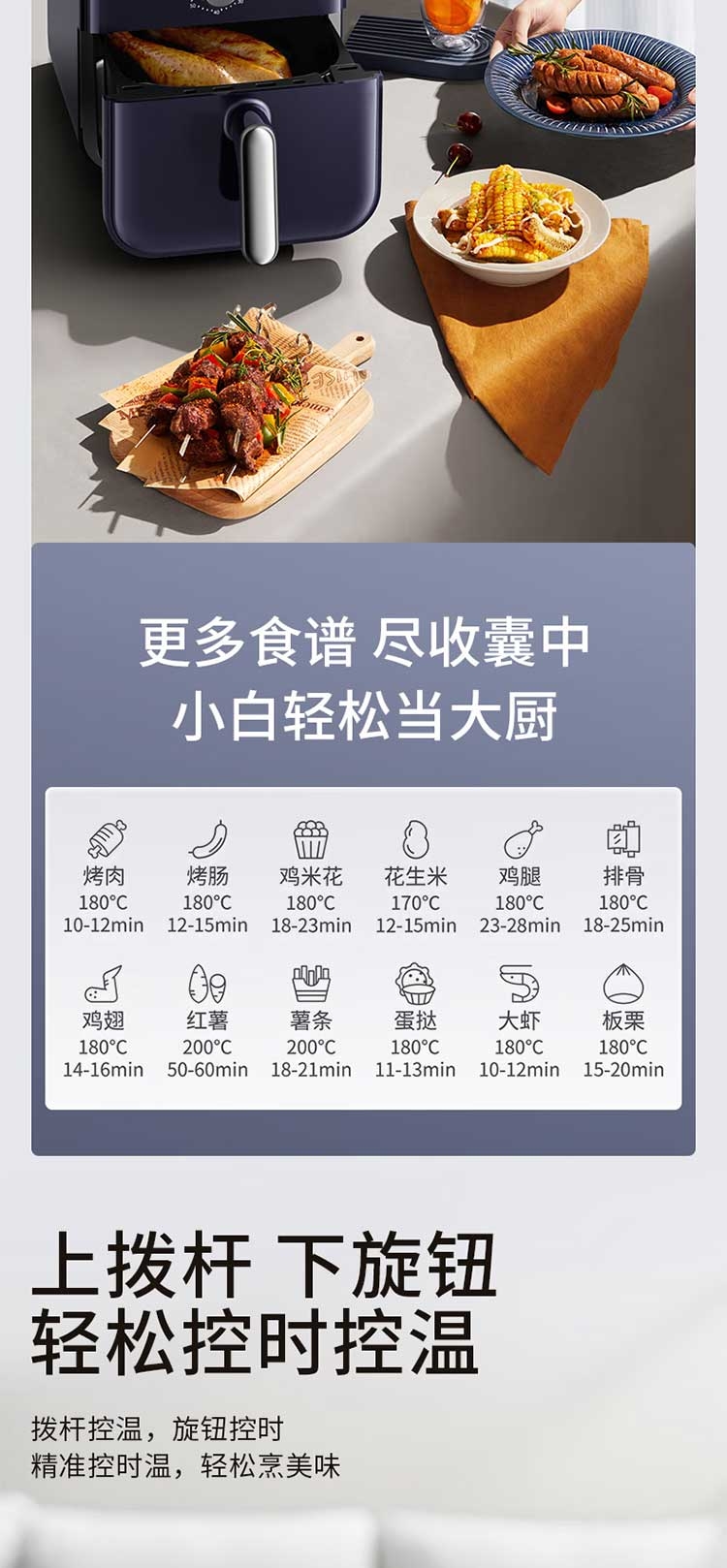 高颜值外观,质感出众;可控时控温,简单操作;4L容量