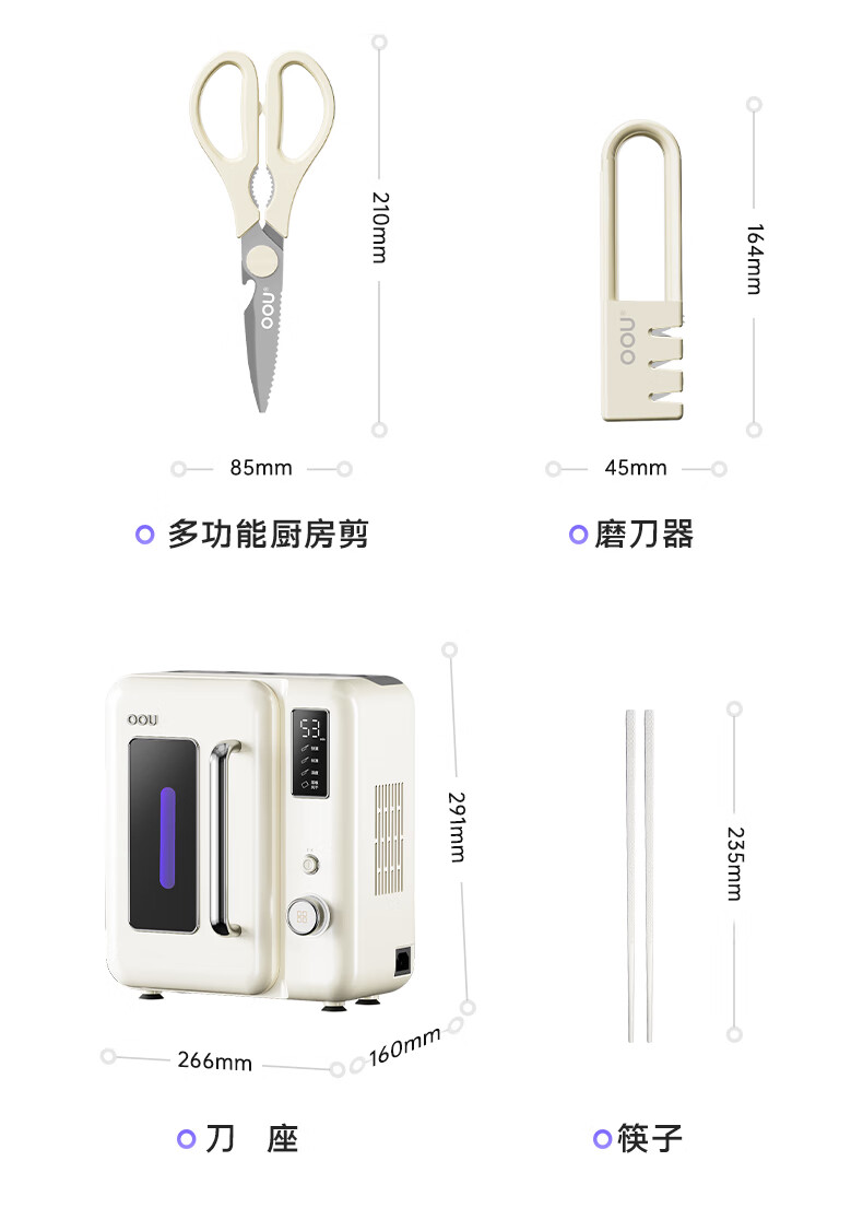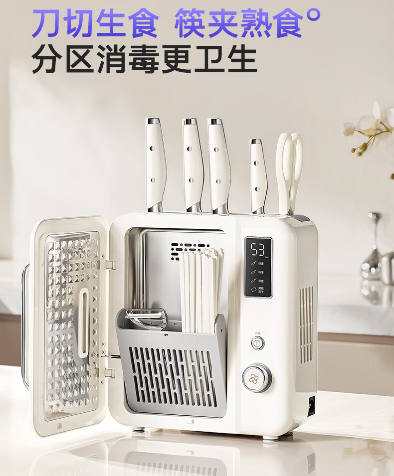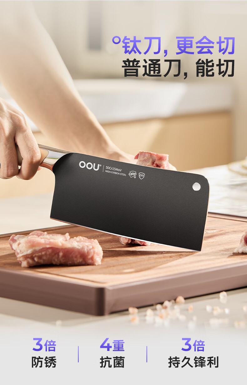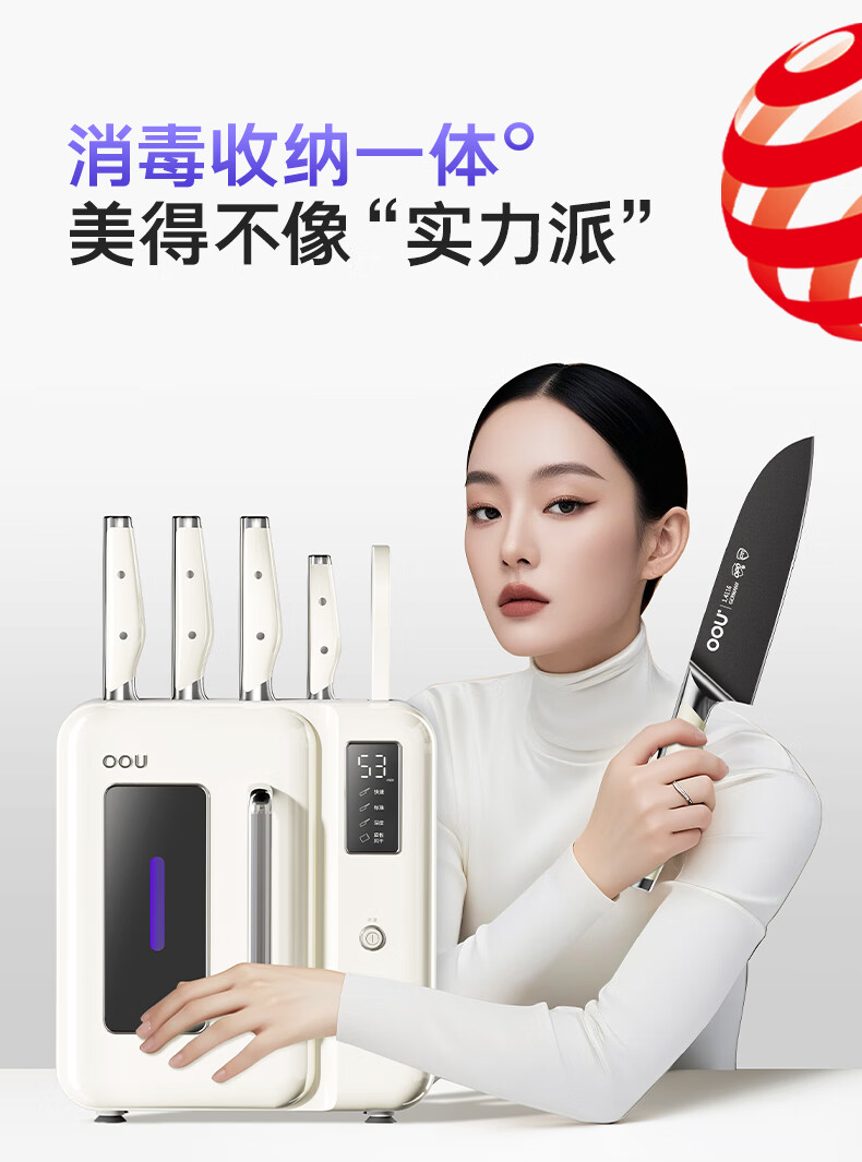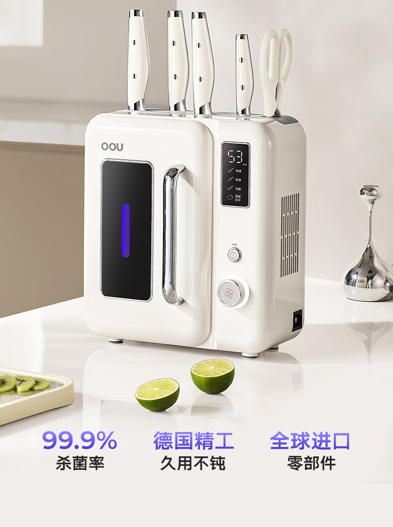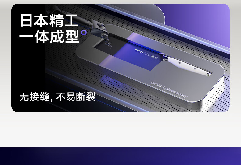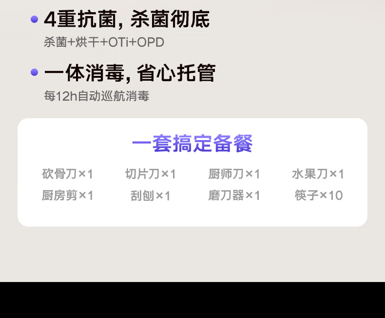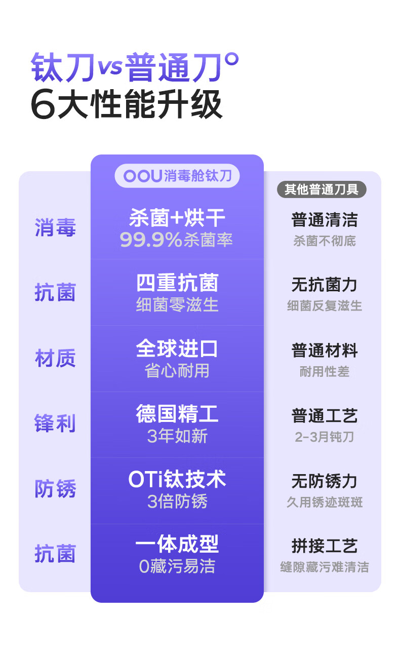 刀柄ABS材质,细腻贴合;刀座防潮防霉好清洗;专刀专用,生熟分切不串味