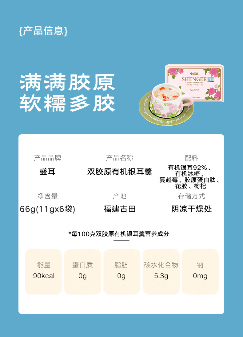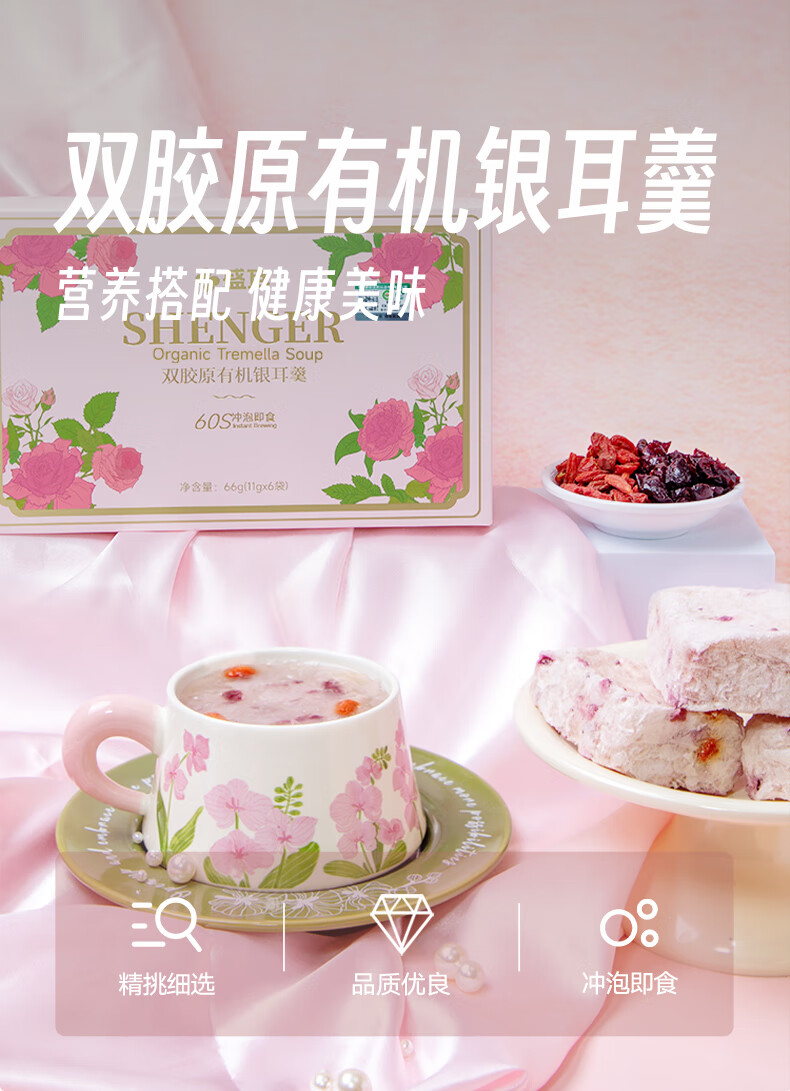 精挑细选的银耳;胶质丰富,软糯可口;冲泡即食,胶质浓浓