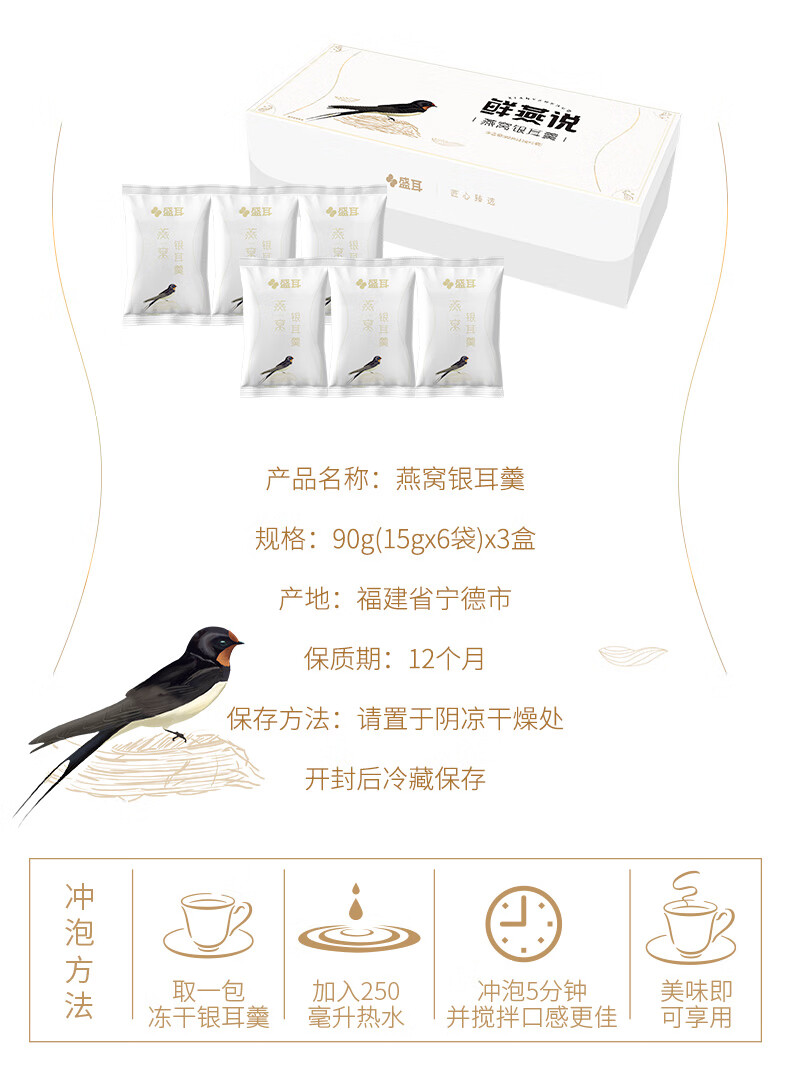 盛耳 冻干燕窝银耳羹3盒装
