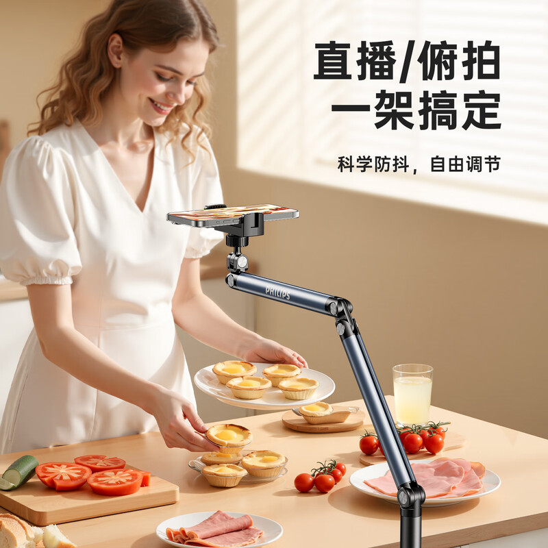 高度角度/自由调节满足不同场景需求;杆身高度可调 铝合金旋转锁扣;仿生机械臂更灵活;锁的紧不下坠强力支撑更稳固