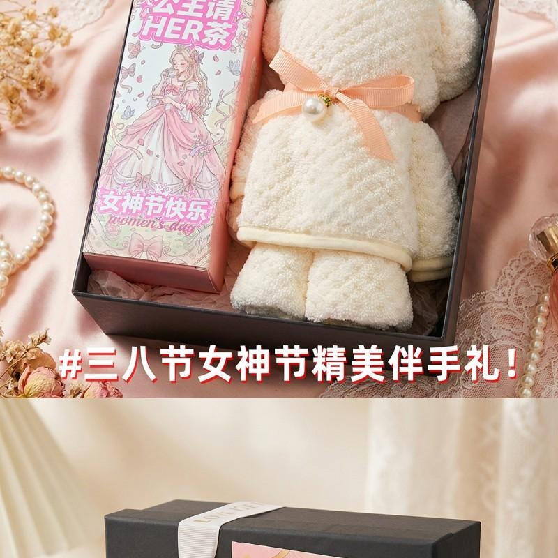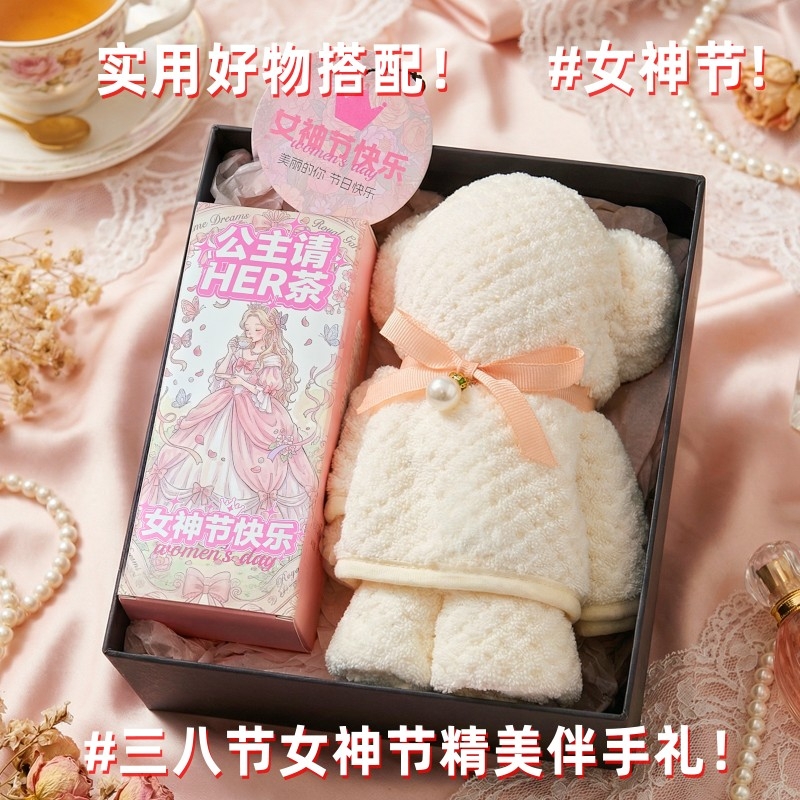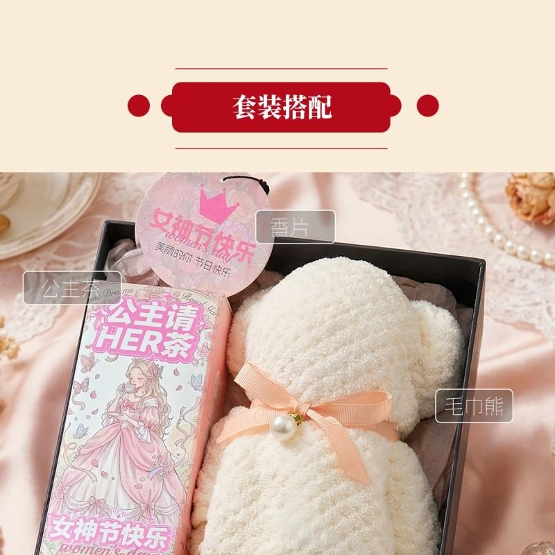 组合:公主请喝茶8g*2袋、女神节香片香挂*1、菠萝格纹理创意小熊毛巾75*34CM*1