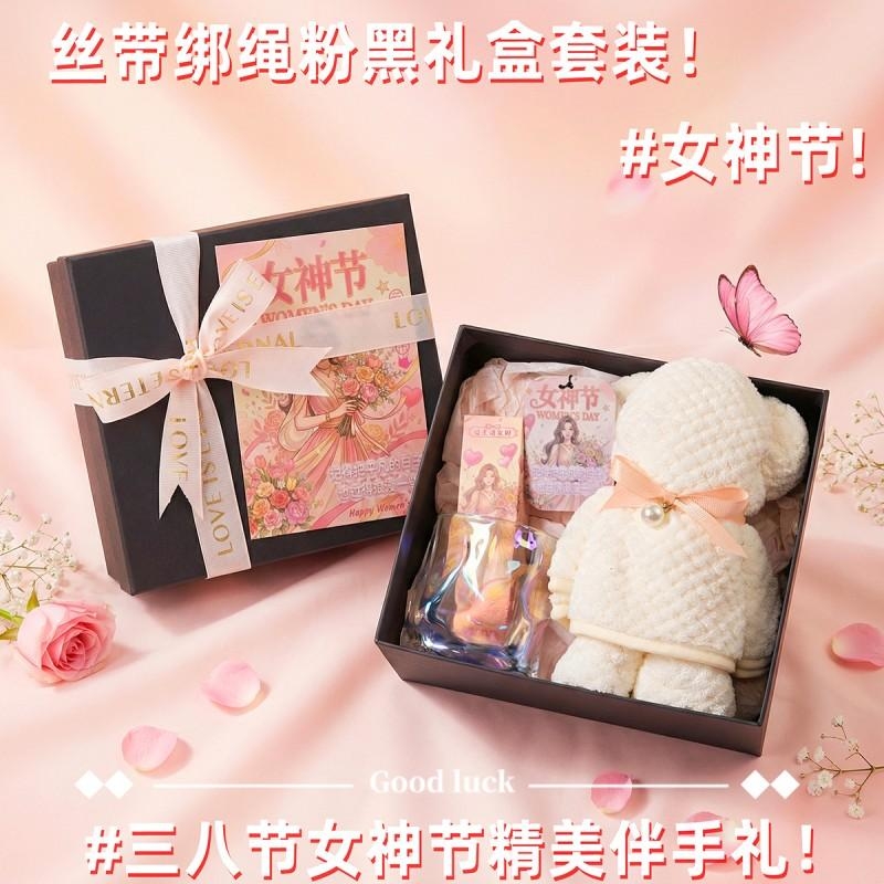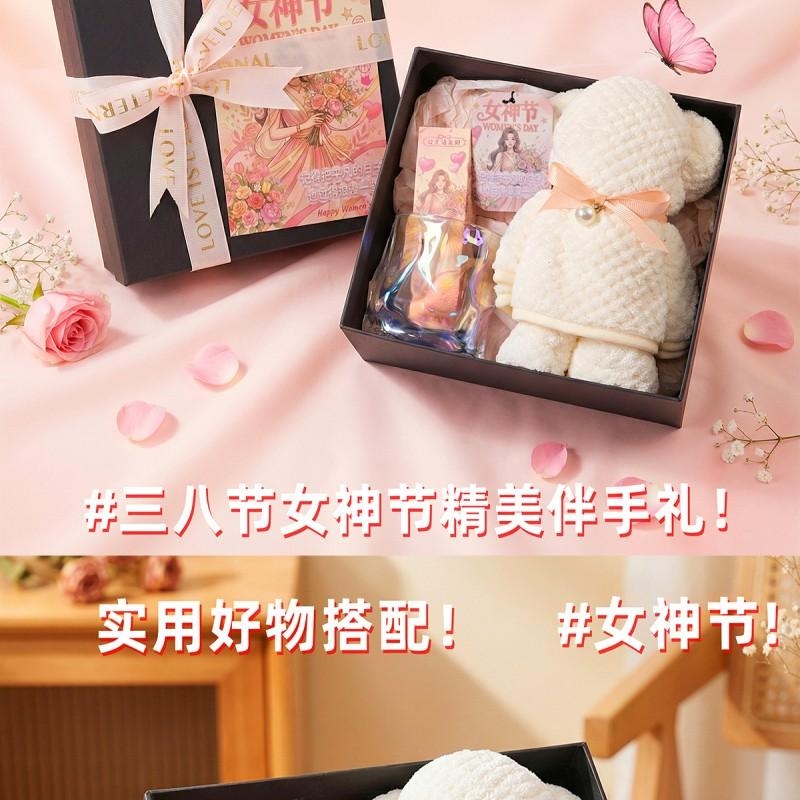 组合:扭扭玻璃杯*1、韩方莉护手霜35g*1、女神节香片香挂*1、菠萝格纹理创意小熊毛巾75*34CM*1