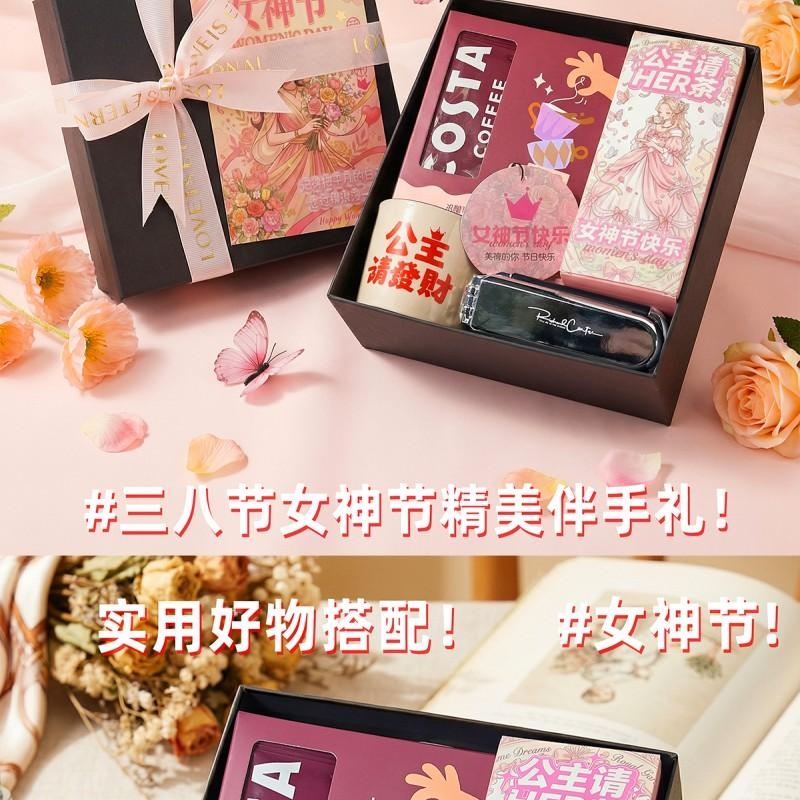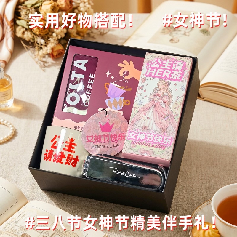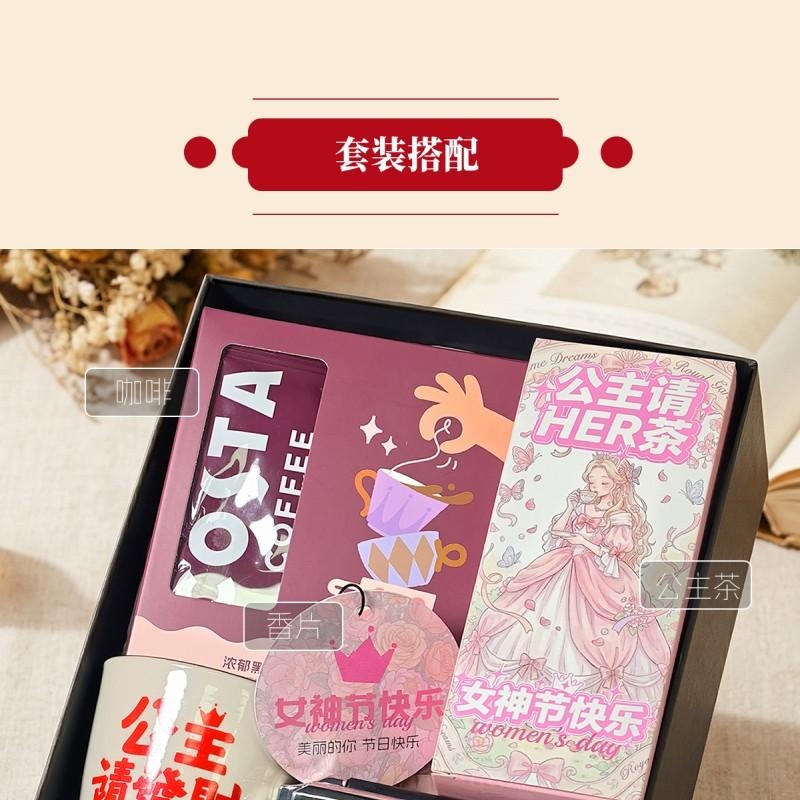 组合:公主请喝茶8g*2袋、COSTA挂耳咖啡8g*2袋、公主请发财陶瓷主人杯*1、镜子气囊头梳*1、女神节香片香挂*1