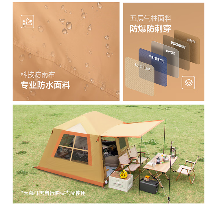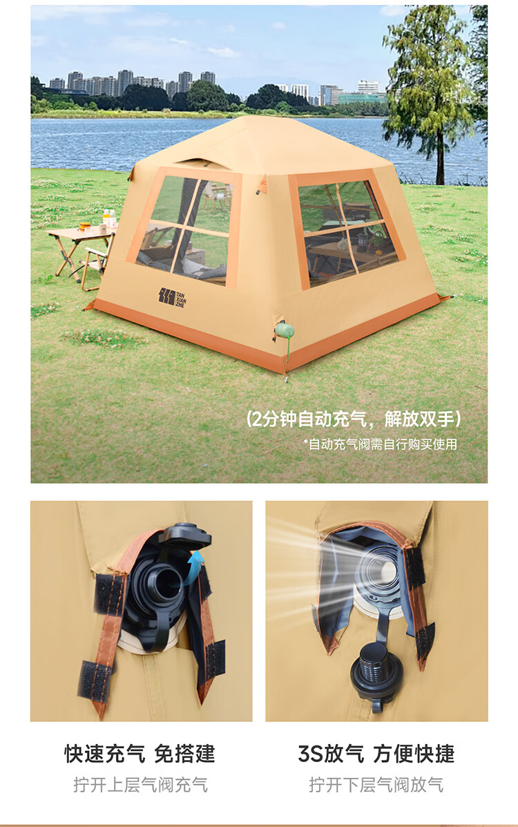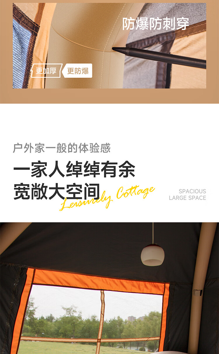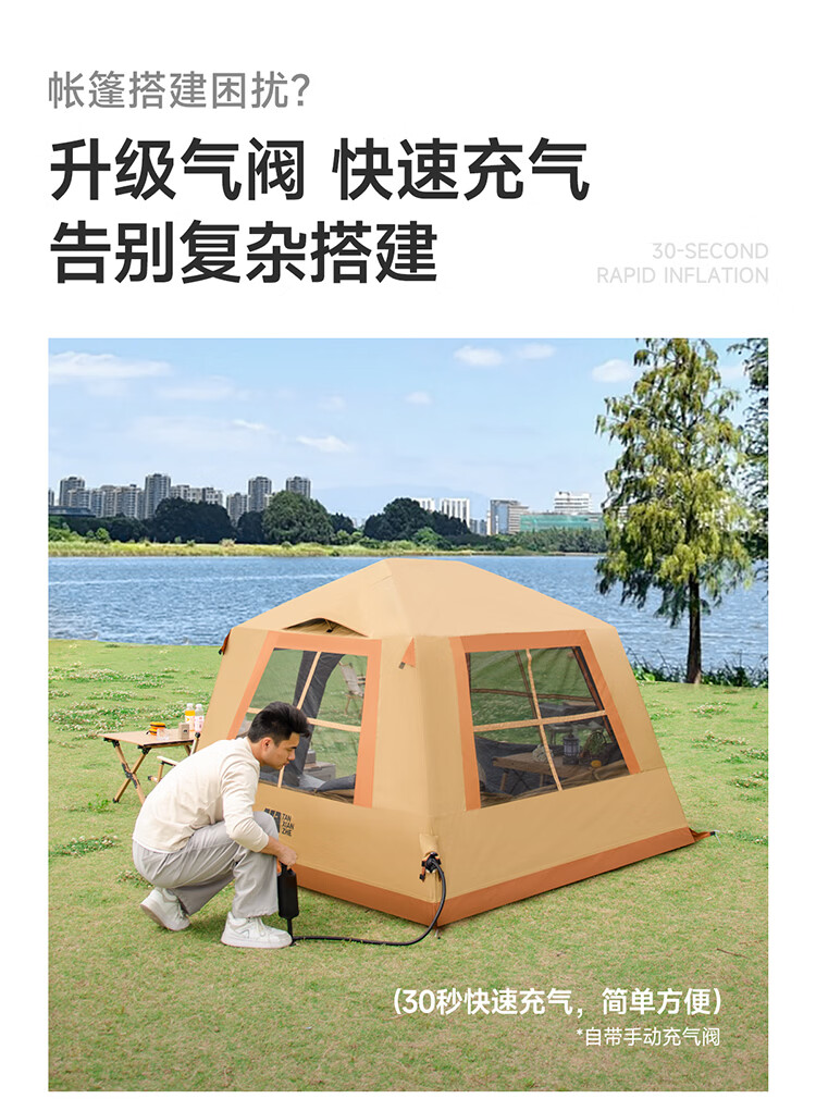 一体式充气帐篷快速搭建;科技防晒面料;安全无骨加厚充气柱