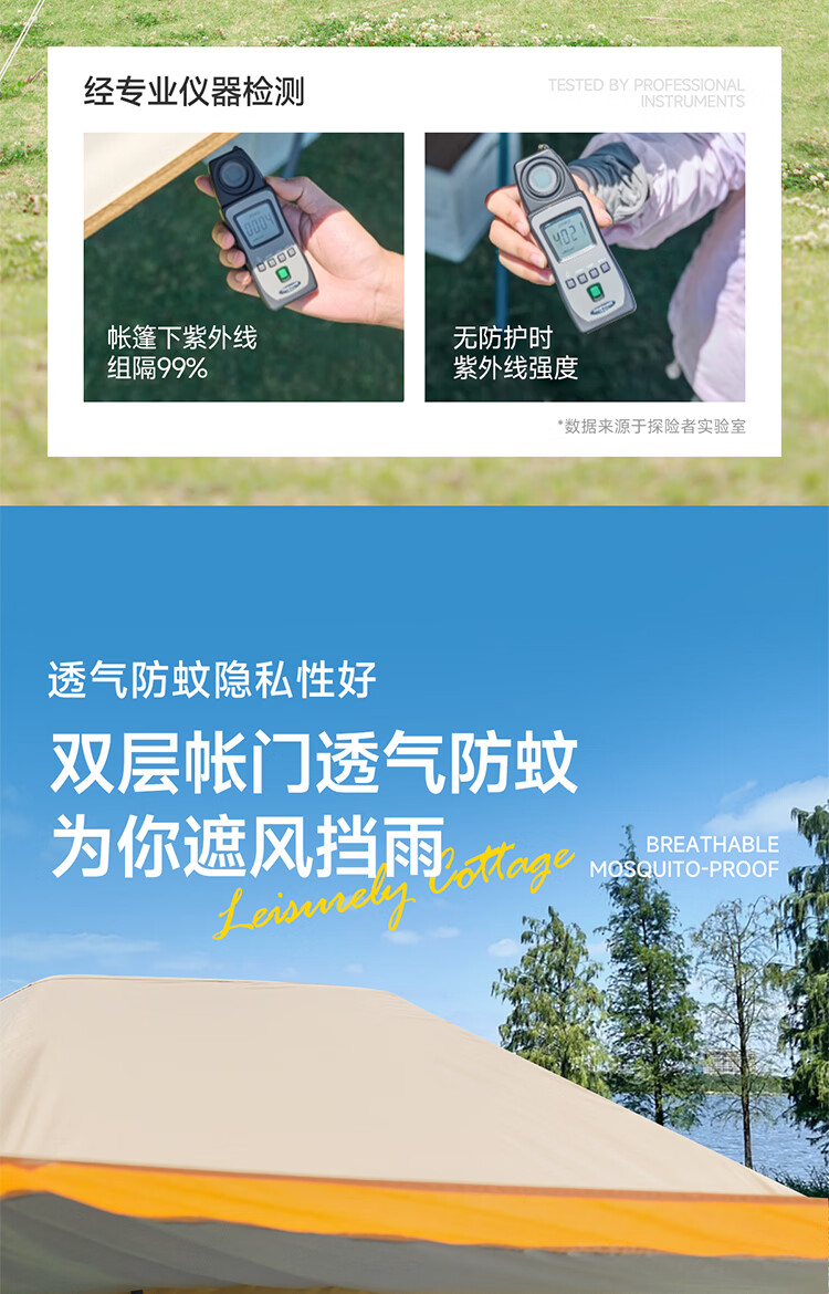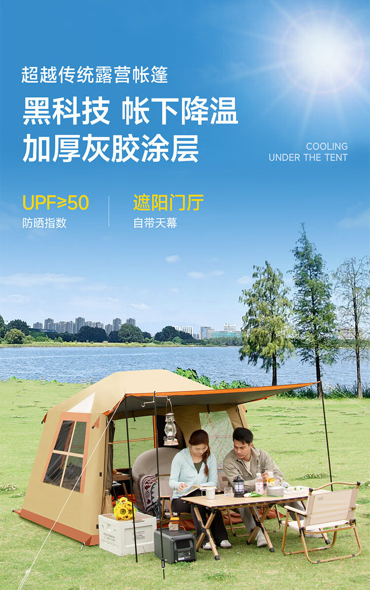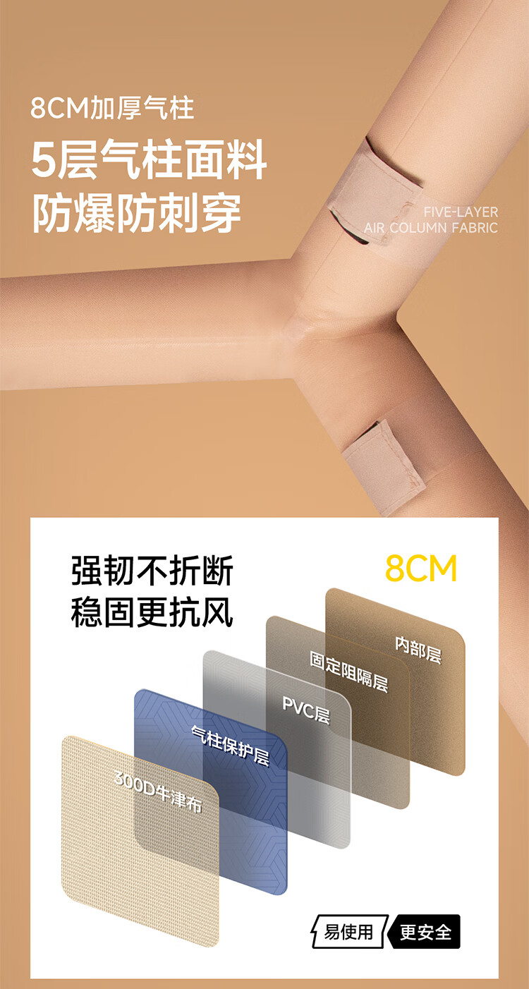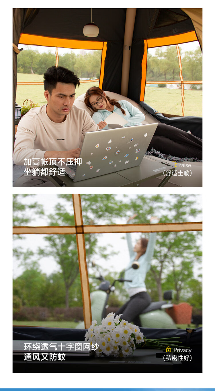 一体式充气帐篷快速搭建;科技防晒面料;安全无骨加厚充气柱
