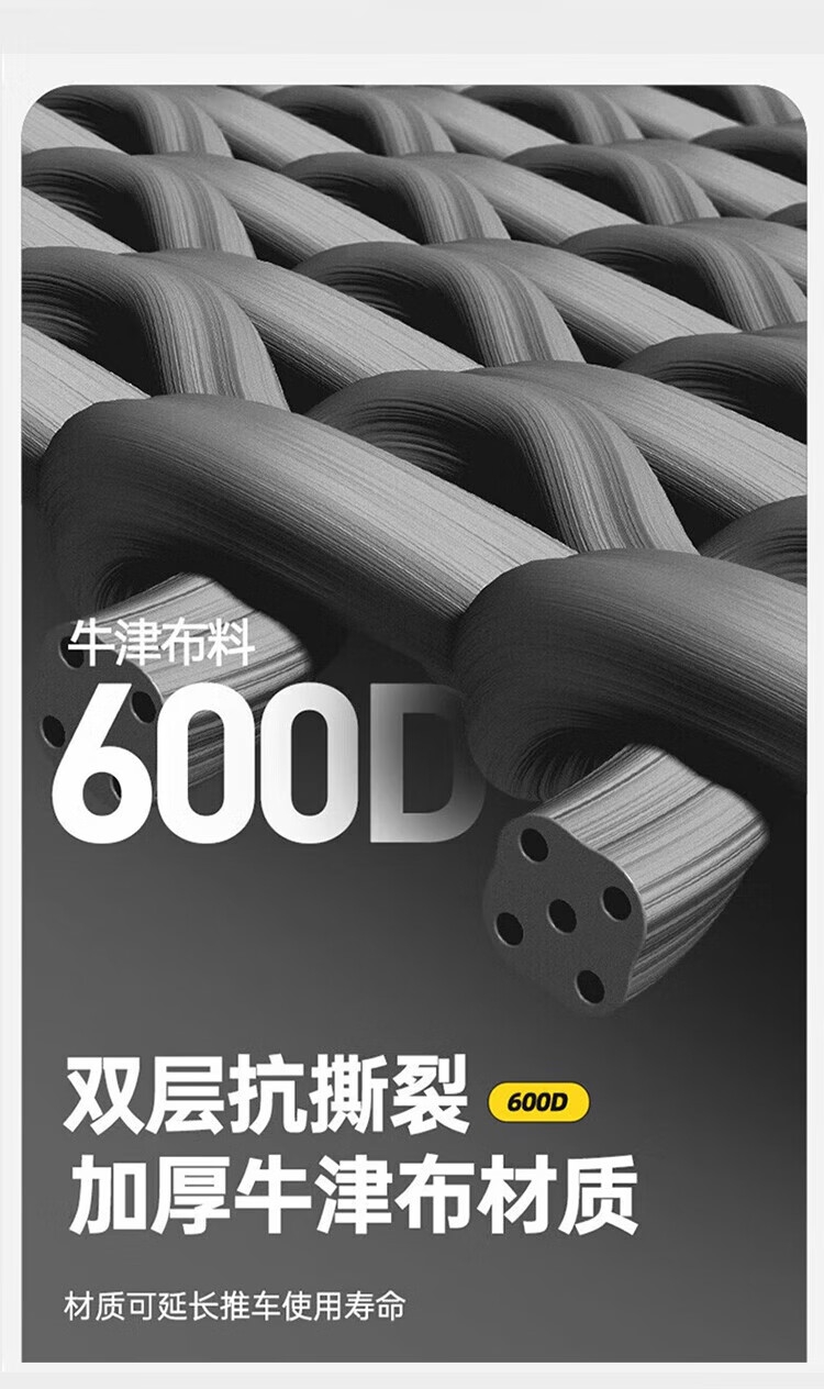 全钢车架;轴承万向轮;加厚牛津布