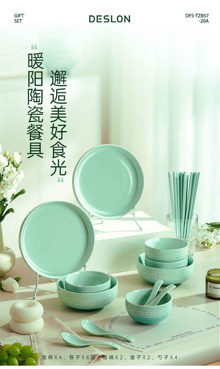配置:饭碗*4、面碗*2、盘子*2、勺子*4、筷子*8双