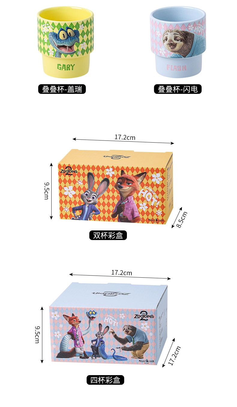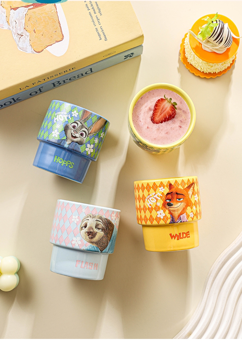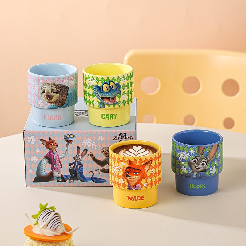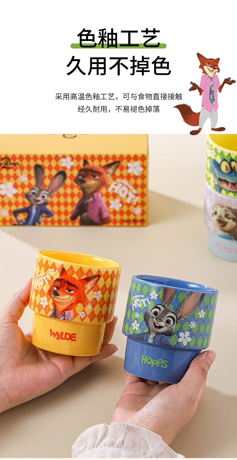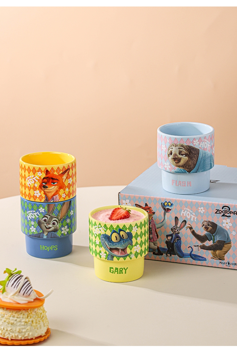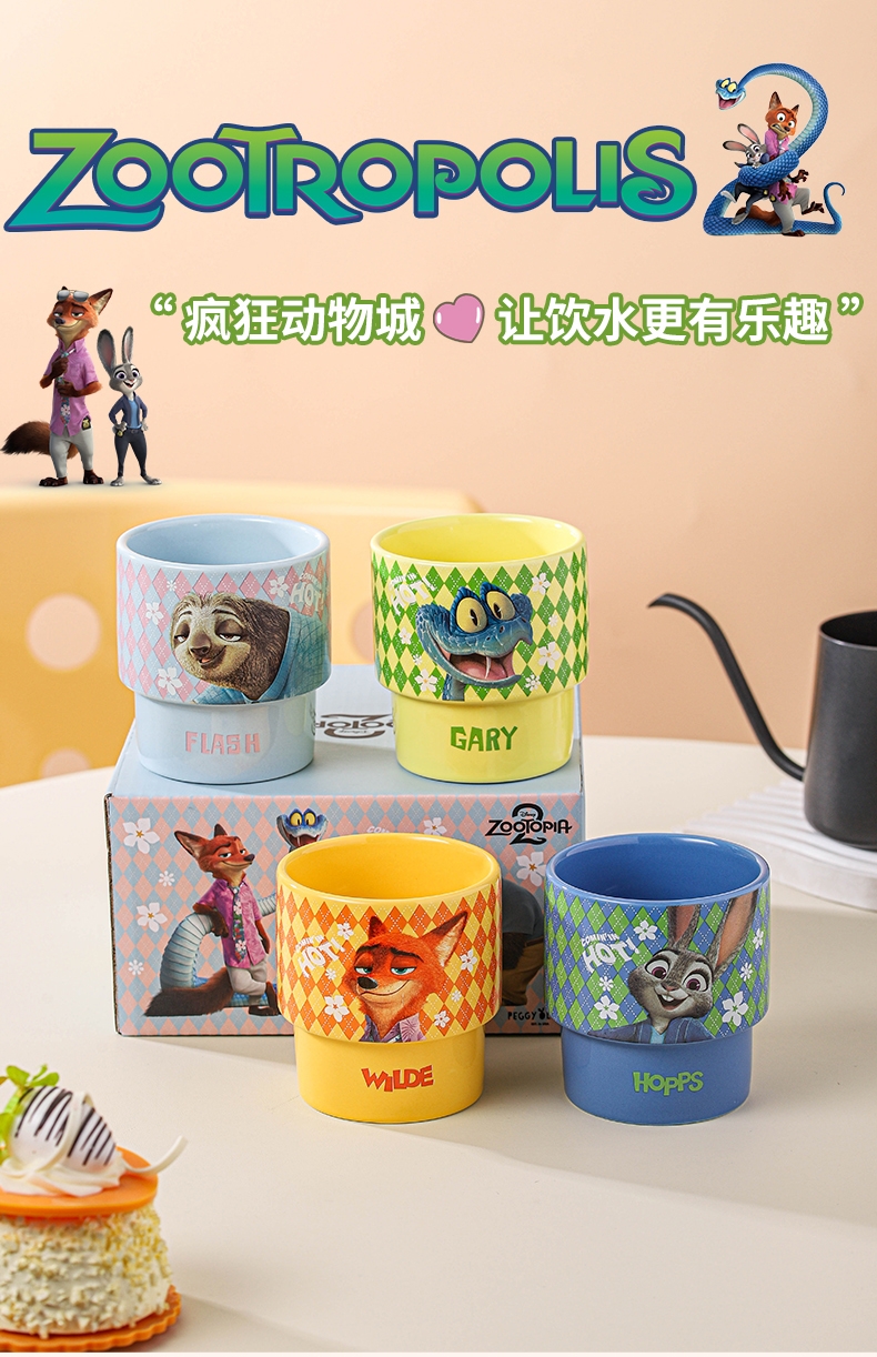 迪士尼 疯狂动物城2周边陶瓷叠叠杯4只
