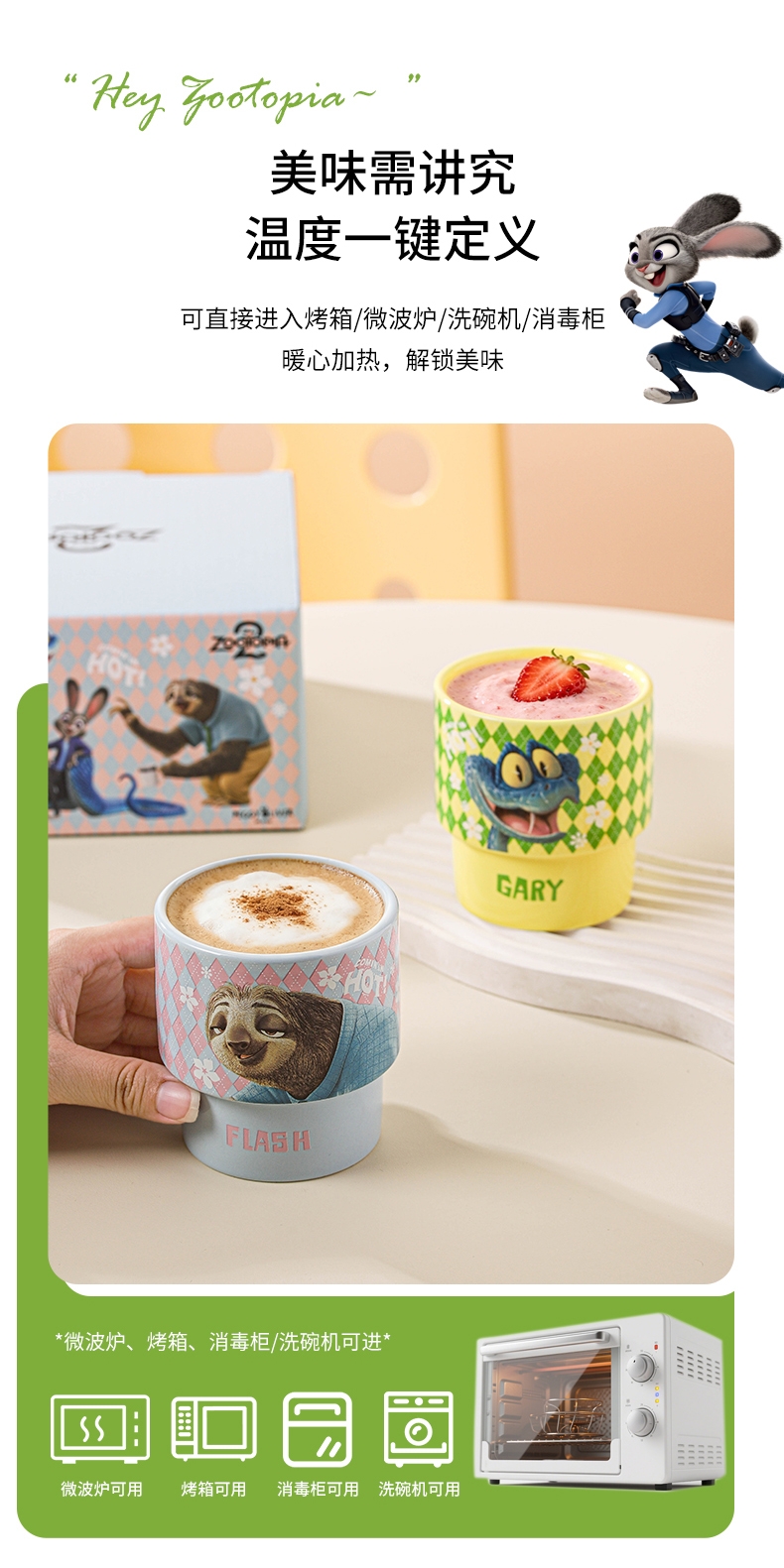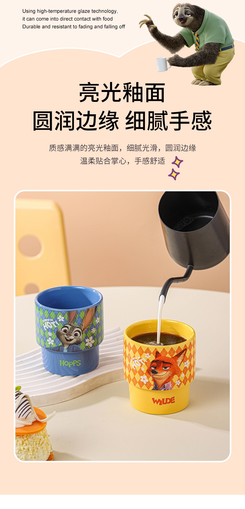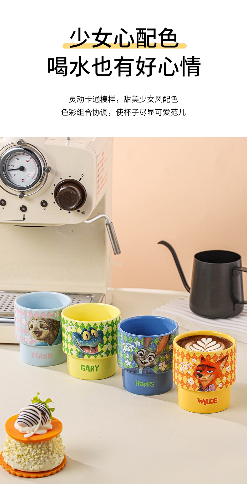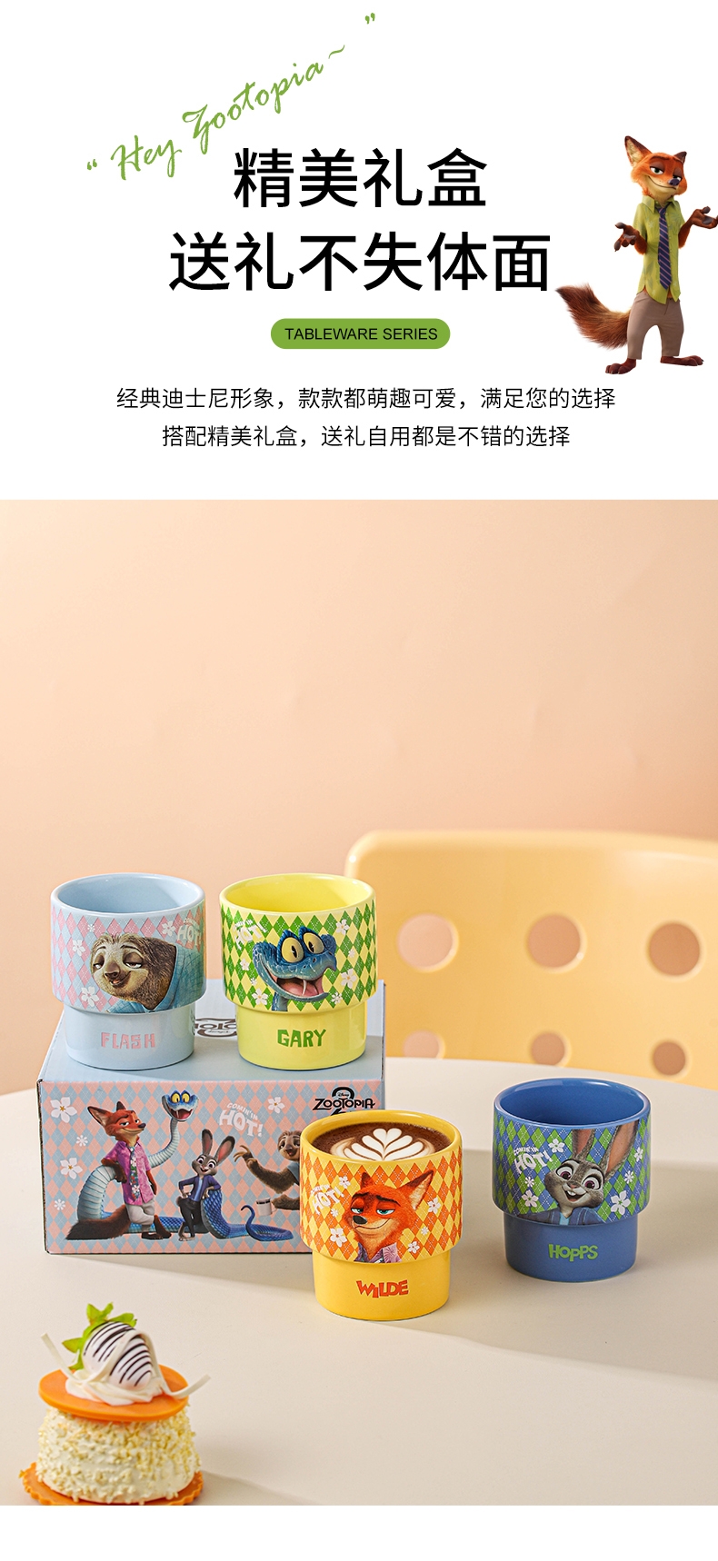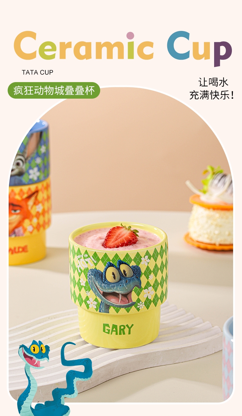 迪士尼 疯狂动物城2周边陶瓷叠叠杯4只