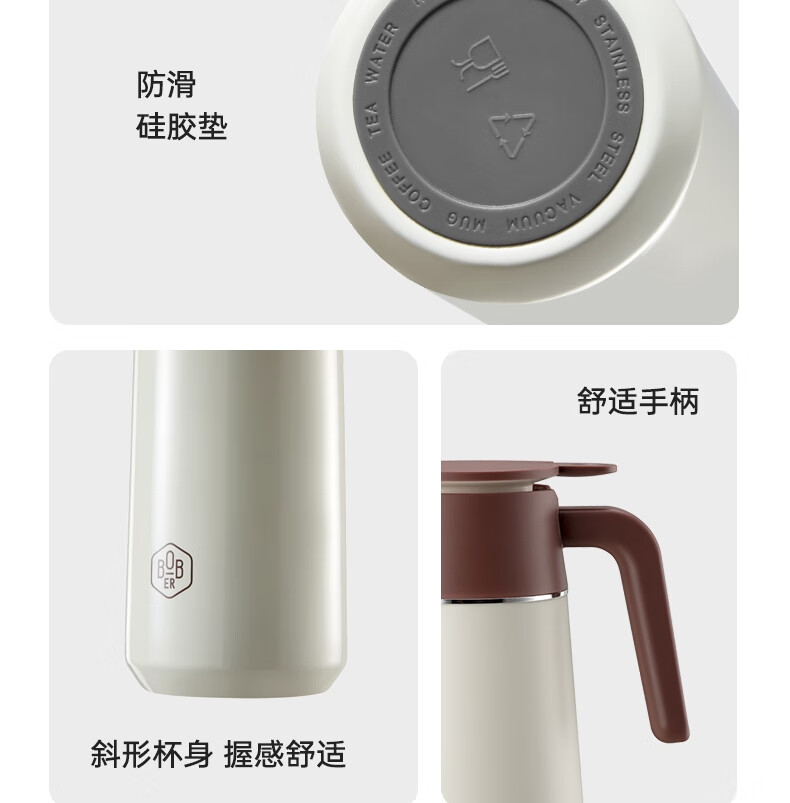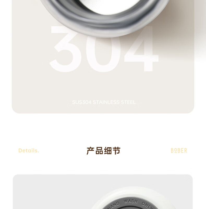 杯身采用304不锈钢,健康环保;;杯底硅胶防滑设计,稳固放置不易倒;;杯身采用烤漆工艺,防刮,耐磨不掉漆,使用时间长