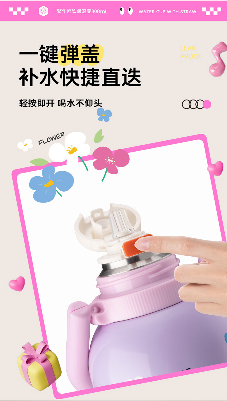 博堡 繁华趣饮保温壶800mLBFHH-800WH/ BFHH-800PL/ BFHH-800BL