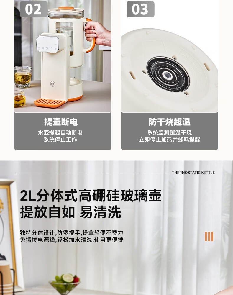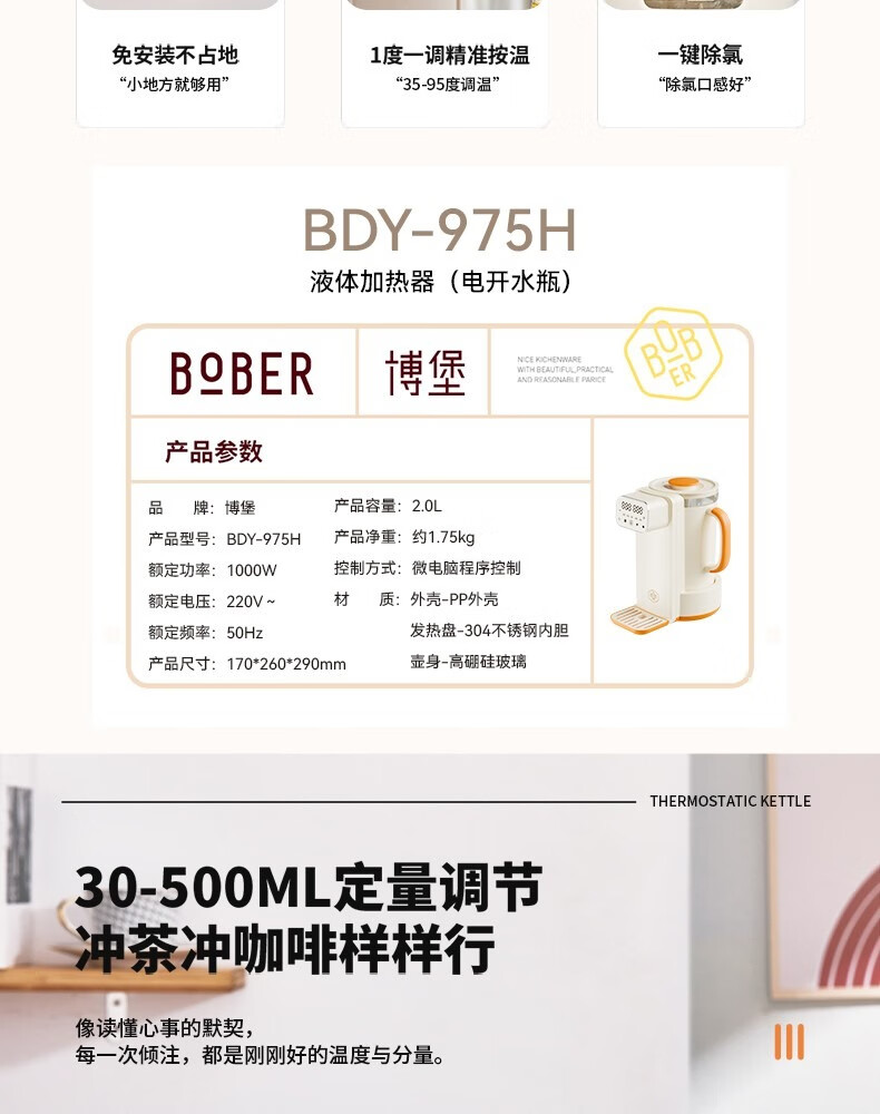 博堡 液体加热器烧水壶2LBDY-975H