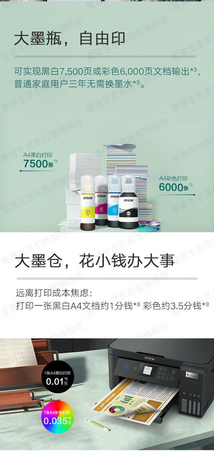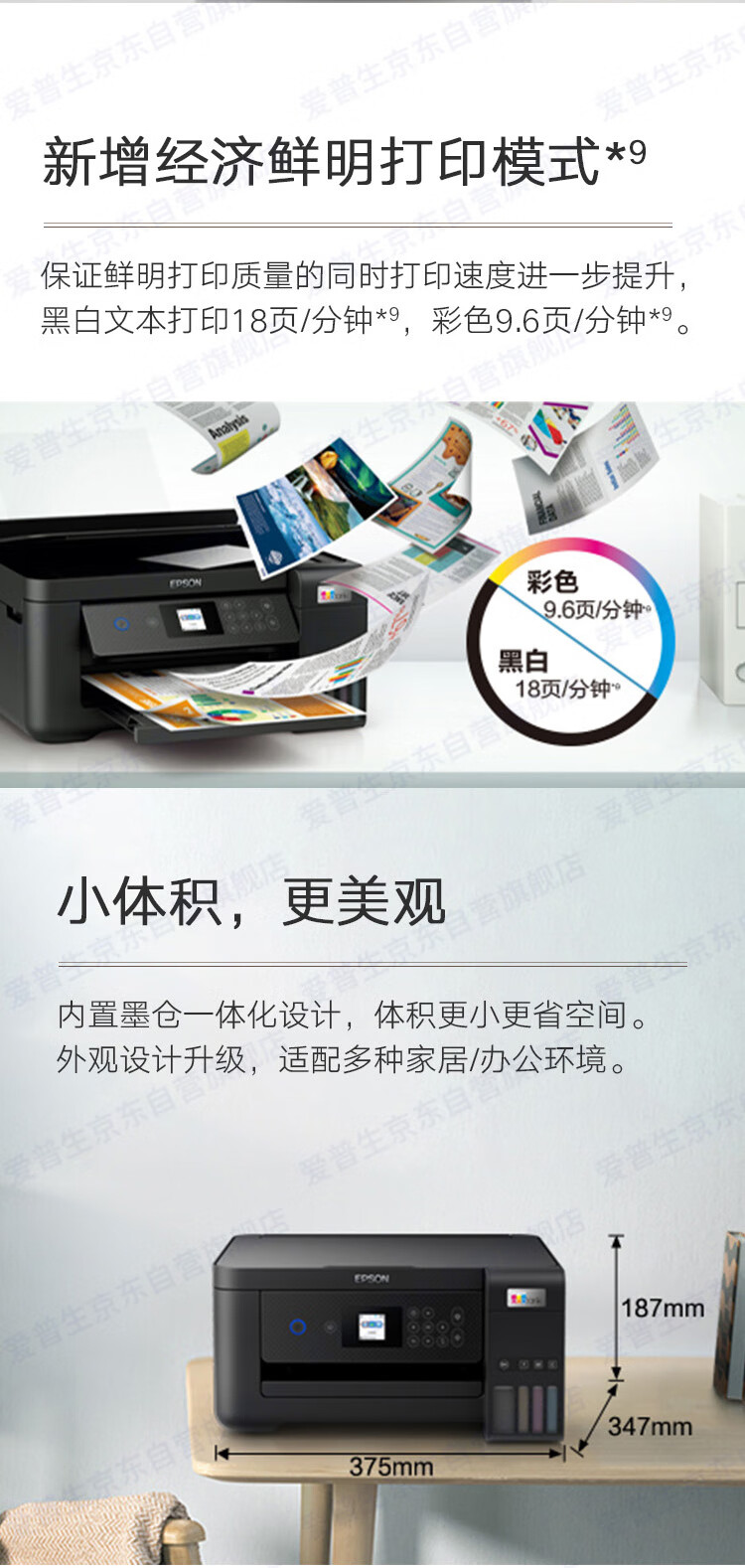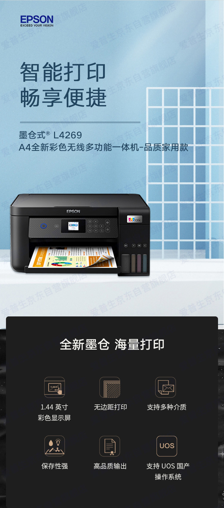 爱普生 墨仓式打印机彩色A4无线一体机L4269