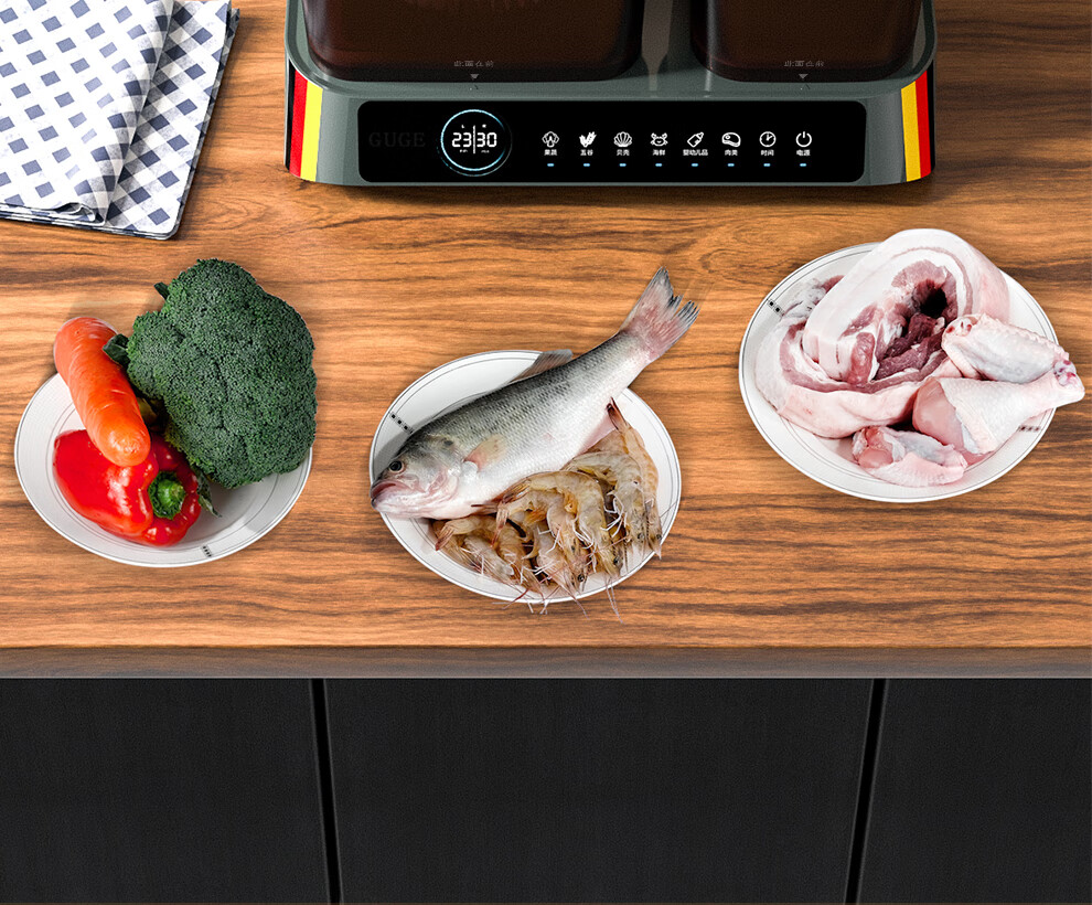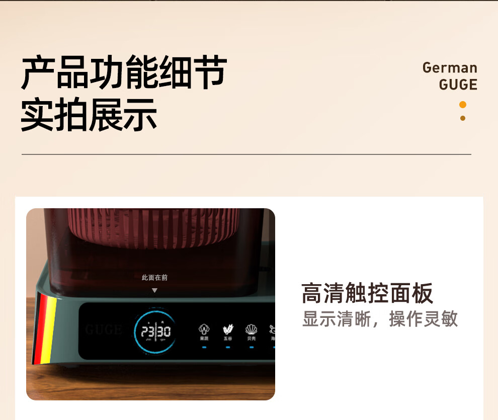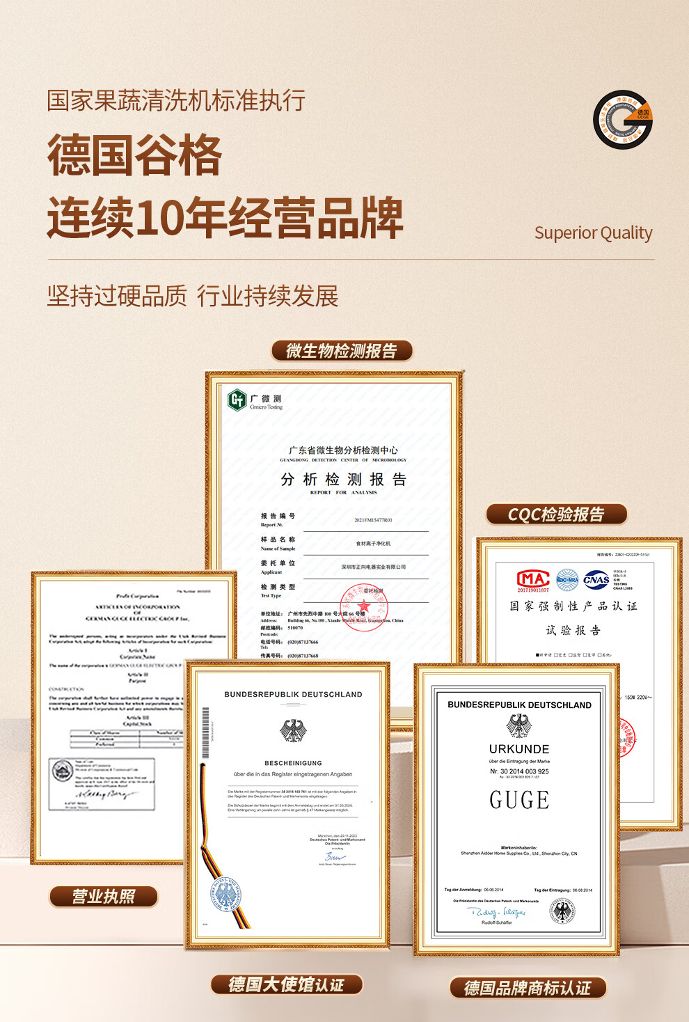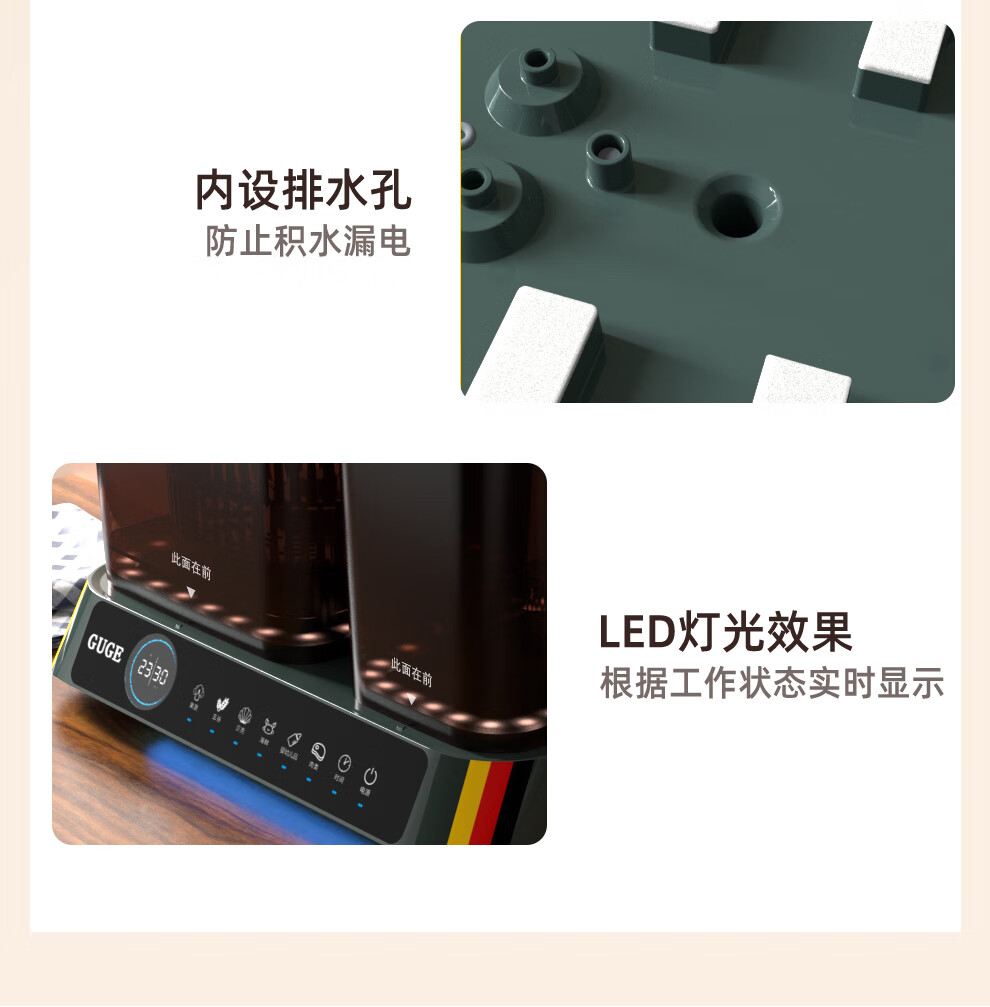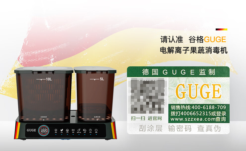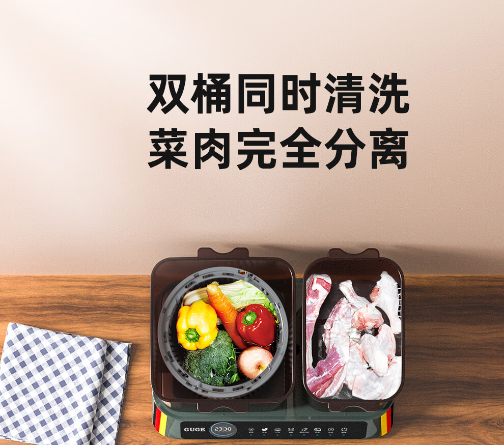 360度旋转清洗,一键净化各种残留污染;高清触控面板, 机桶分离方便清洗;两种电解模块,钛电解羟基离子,强力去除残留、病毒