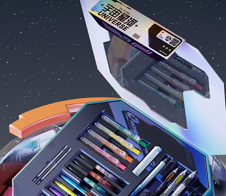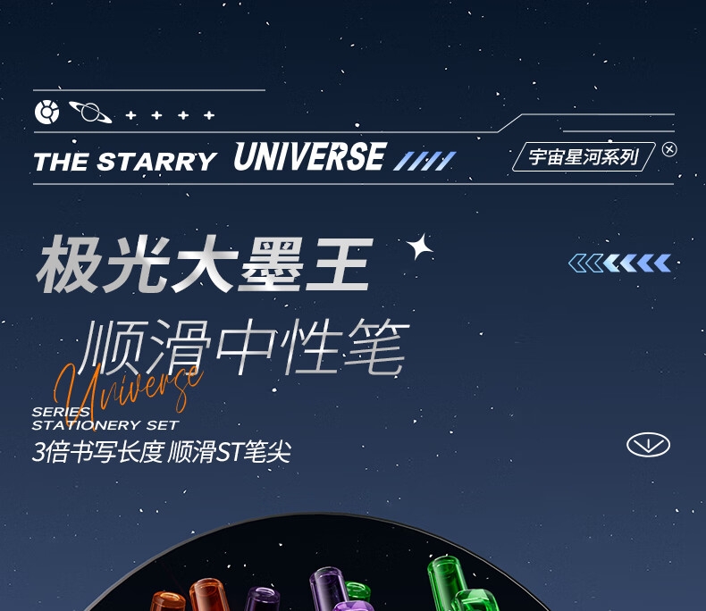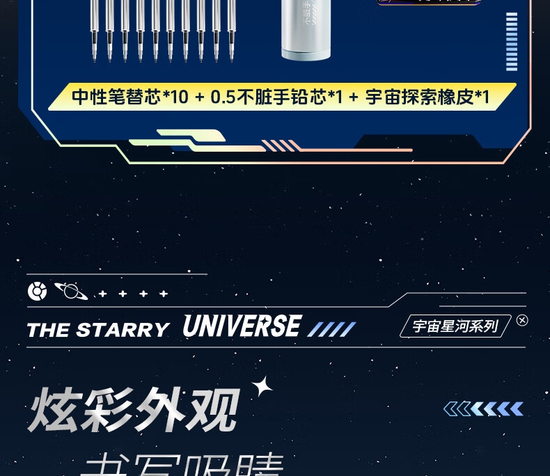 宇宙星河主题;一次配齐书写28件套;中性笔 书写丝滑,出墨均匀