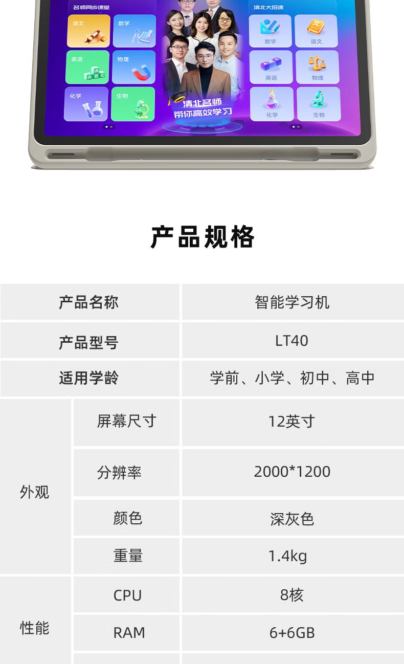 大屏幕尺寸12英寸;超大容量12G+256G;分辨率2000x1200
