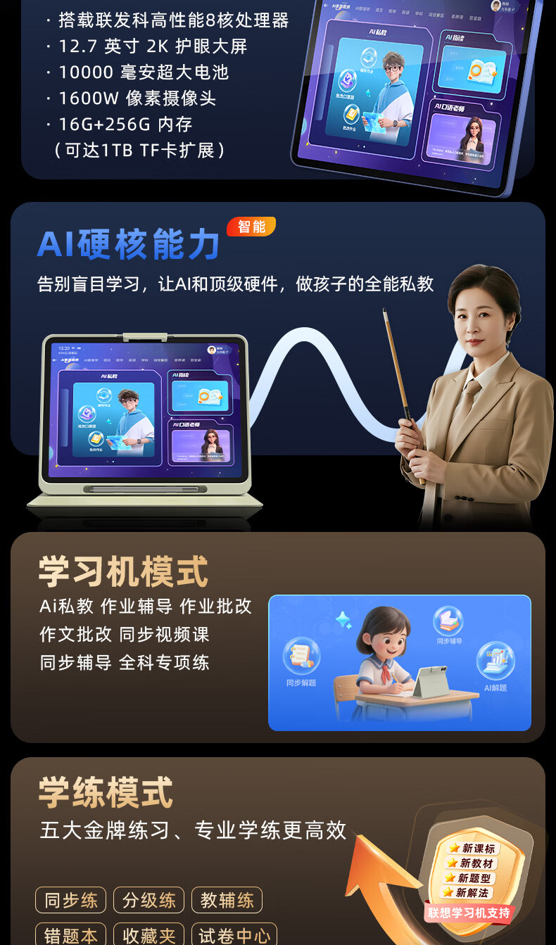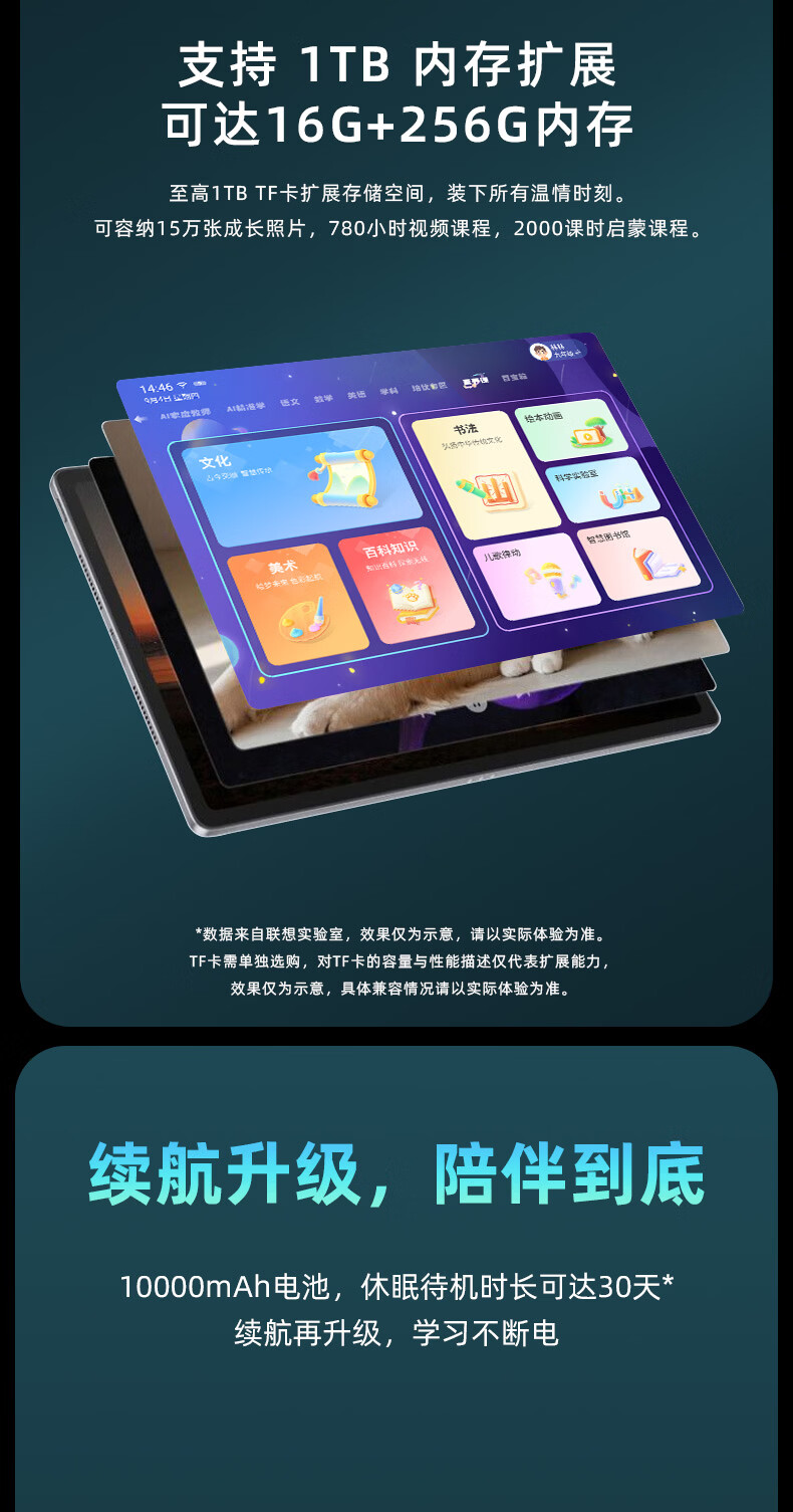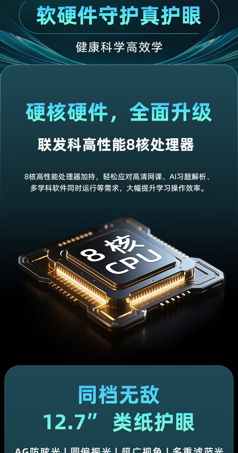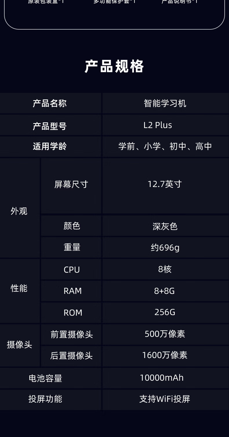 大屏幕尺寸12.7英寸;摄像头1600万超高像素;10000毫安大容量电池