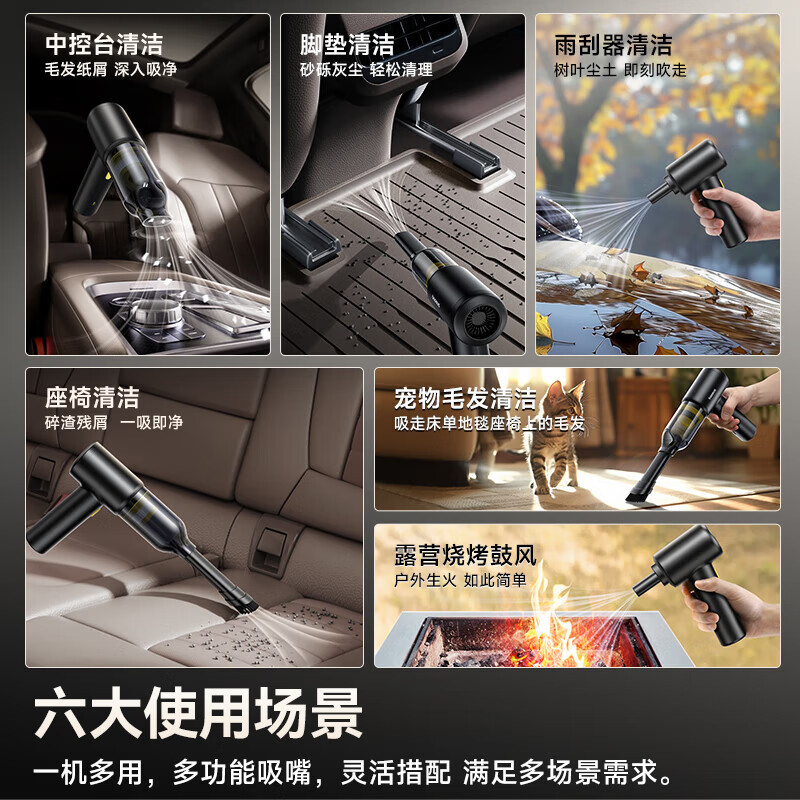 一机多用 洗吹充抽四合一;可连续使用30min 清洁自在掌控;高密度海帕滤网 可反复水洗