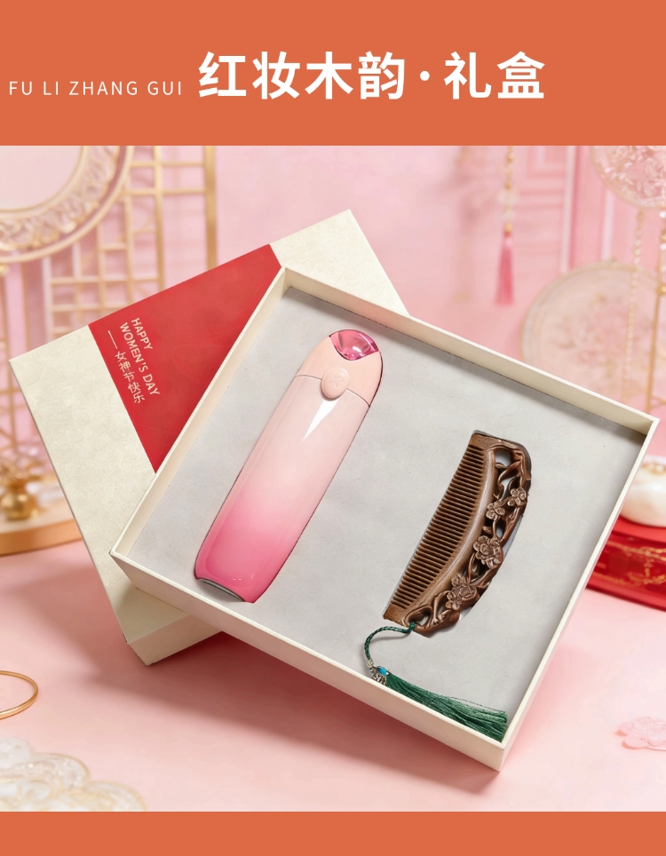 柔润口红杯+温润檀木梳,三八节礼赠专属温柔与雅致;口红造型杯悦目,檀木梳护秀发,女神节礼致精致女性;口红杯藏温柔,檀木梳梳雅致,三八礼赠她万般美好