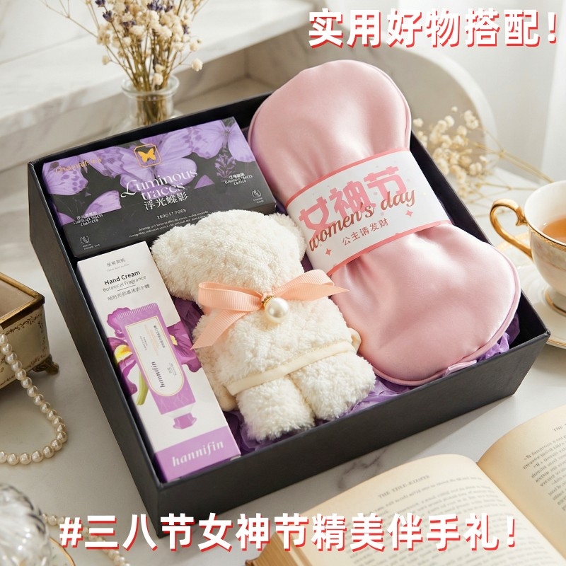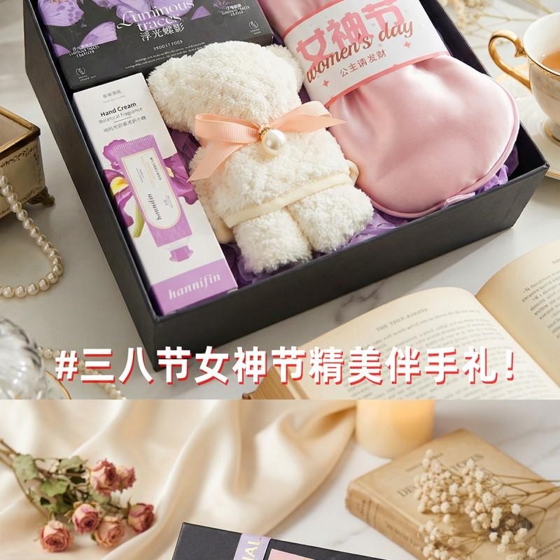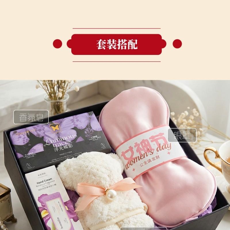 组合:焕颜香氛皂220g*1、韩方莉柔润护手霜35g*1、女神节公主眼罩*1、菠萝格纹理创意小熊毛巾30*30CM*1