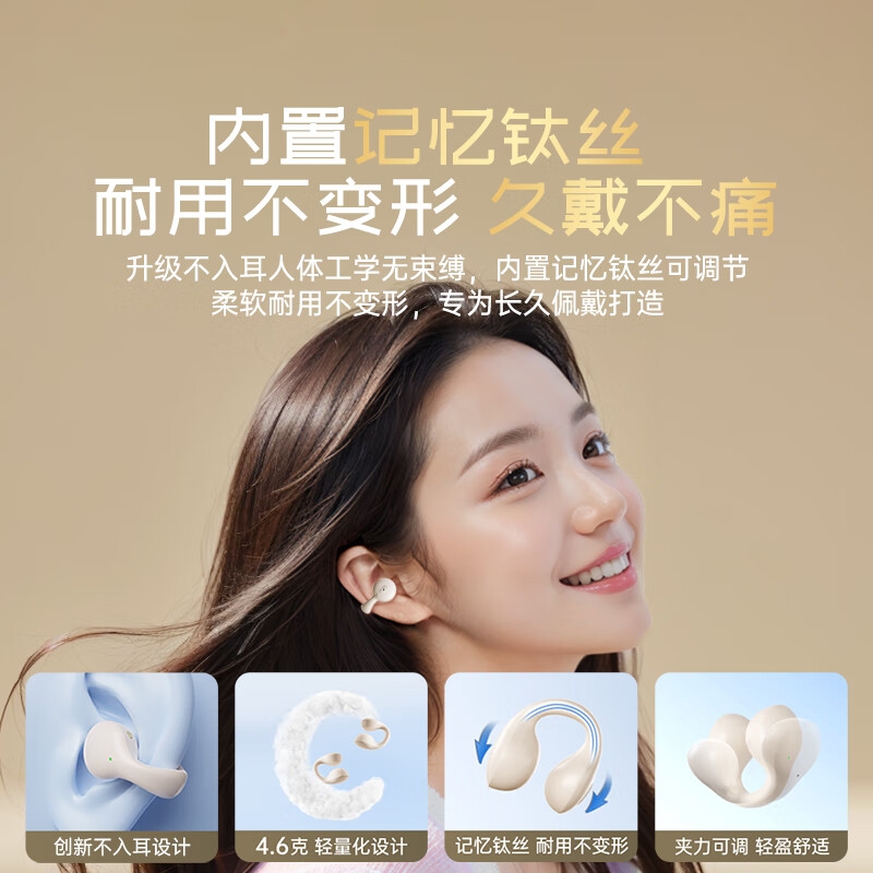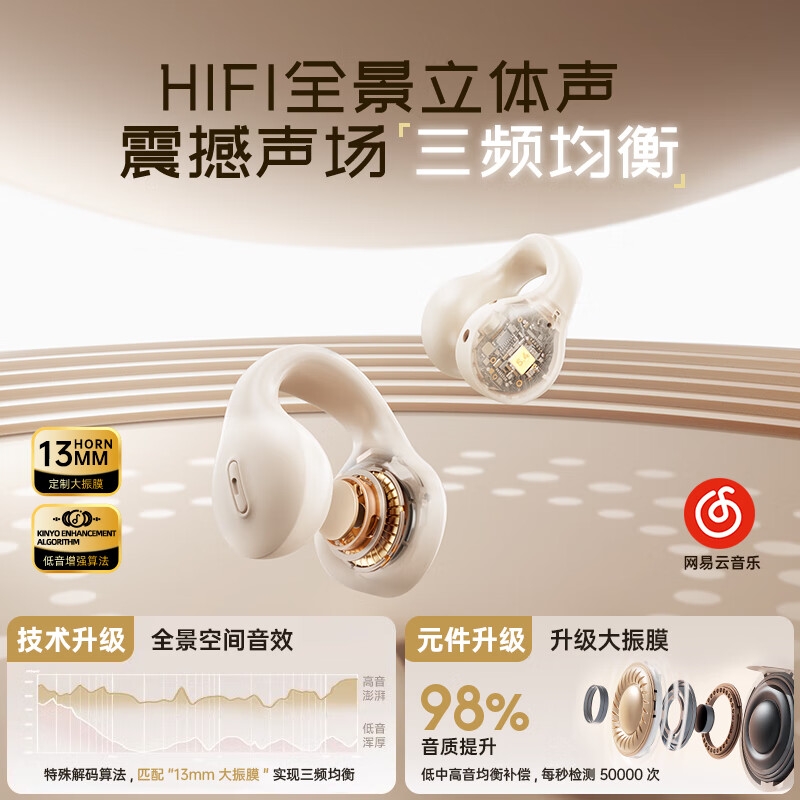 旗舰蓝牙5.4技术 运动狂甩不掉;全景立体环绕音质 脉冲定向传音;ENC高清通话降噪 大电池超长续航;记忆钛丝随意调节 无感佩戴