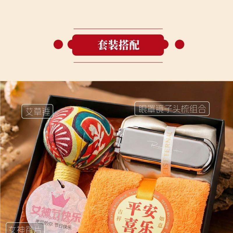 组合:艾草养生锤*1、女神节香片香挂*1、平安喜乐毛巾75*34cm、女神节公主眼罩+镜子气囊头梳组合*1