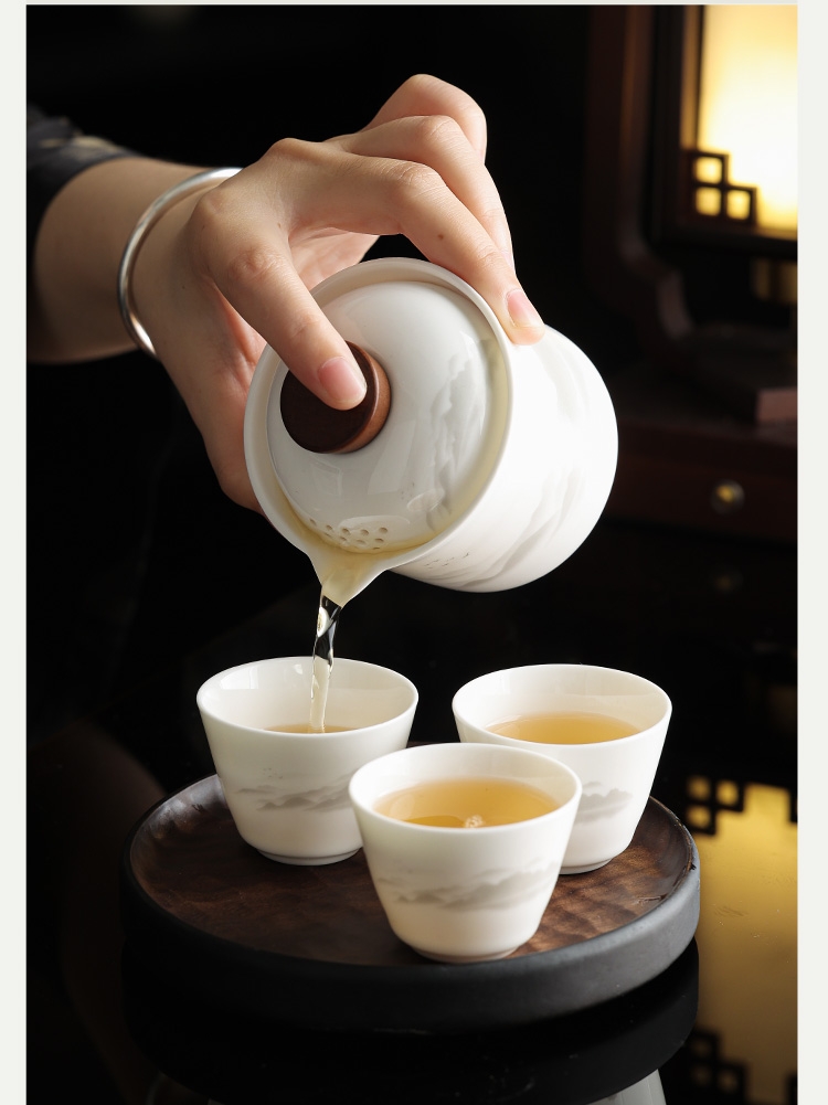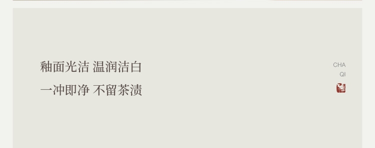 细腻如脂,温润如玉;透光见影,洁白无暇;一冲即净,不留茶渍